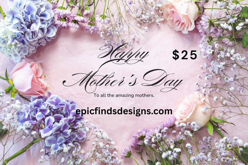 Give the a Gift Card to a friend, family member or loved one. They make awesome surprises and are great for that last minute hard to think of gift. Available in denominations from $25 to $200 dollars. Digital gift cards delivered directly to the recipients email and never expire to be used online in Epic Finds & Designs.