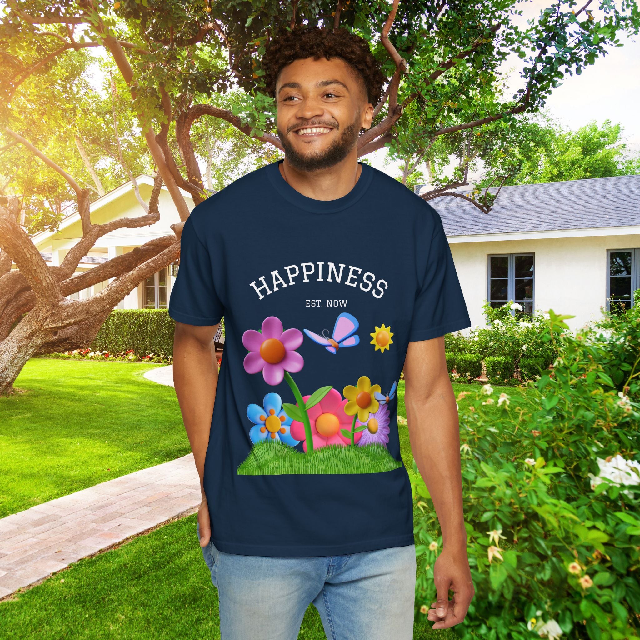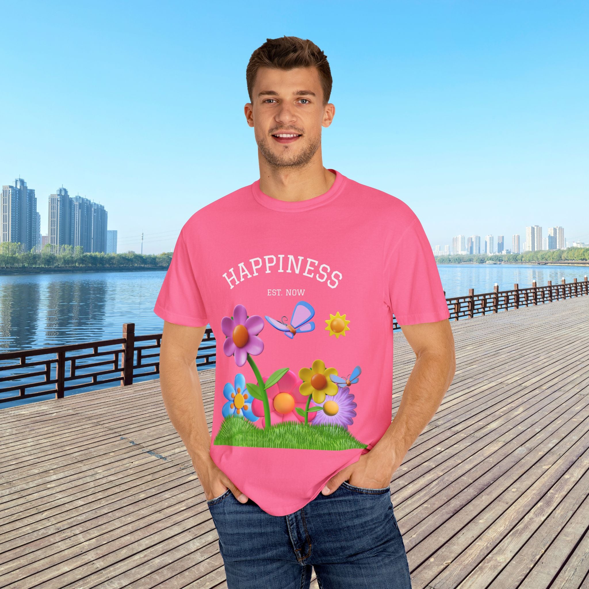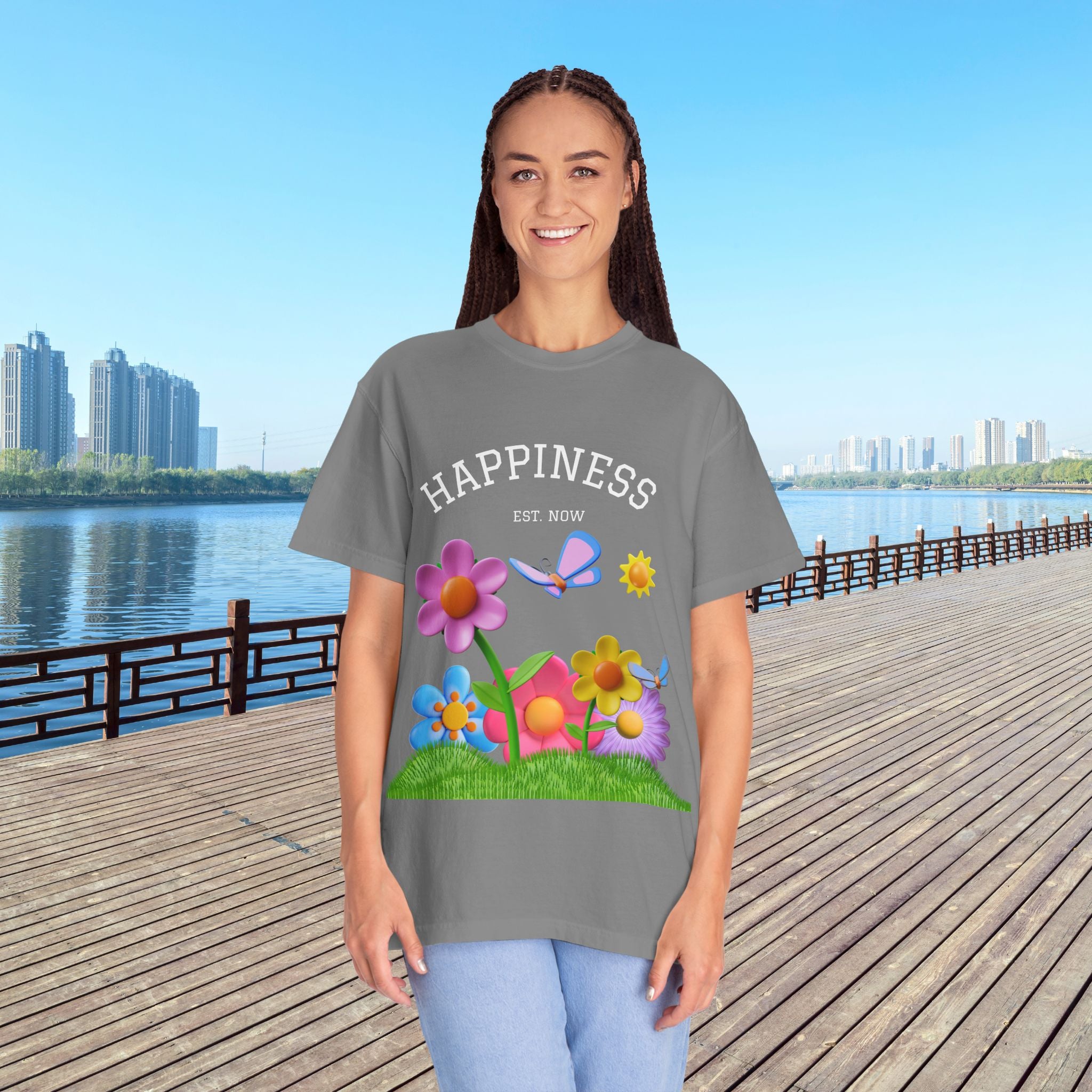 Cheerful Flower Graphic T-Shirt, Happiness Tee,