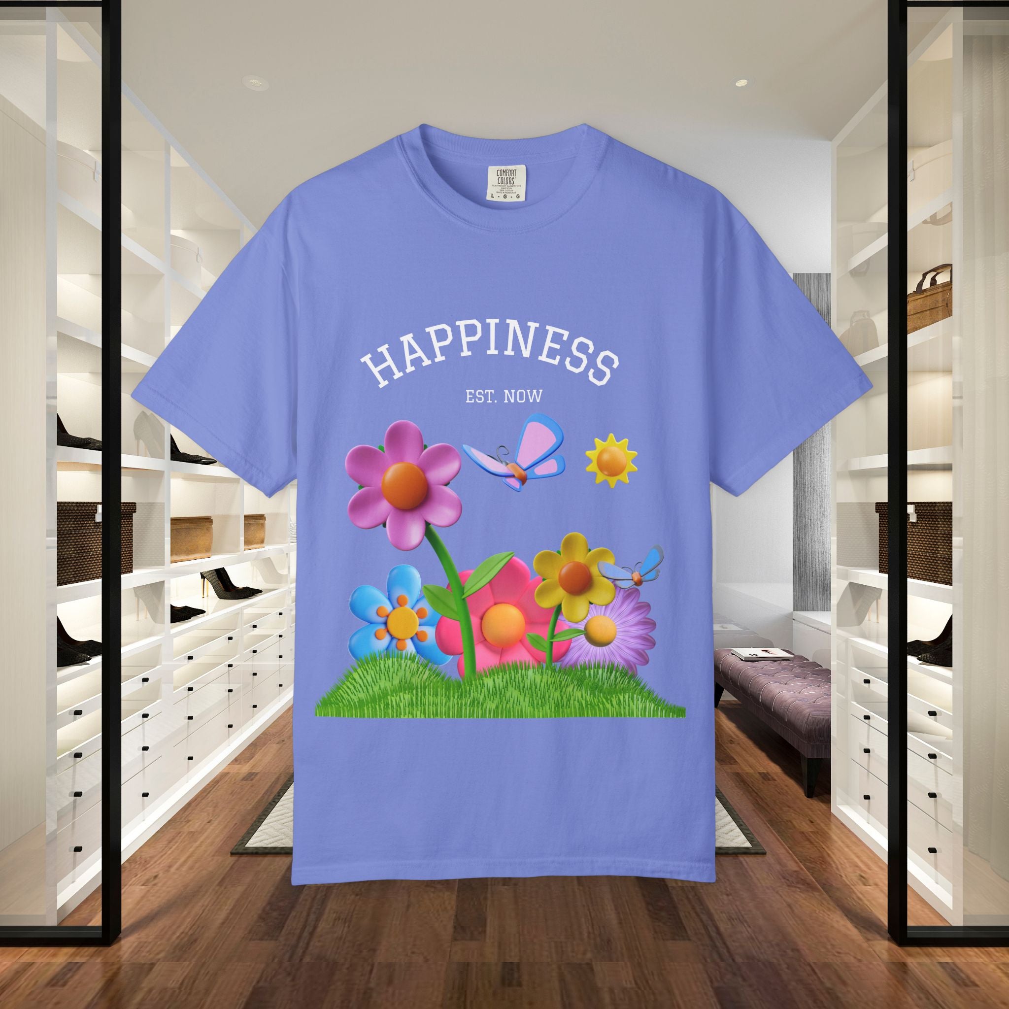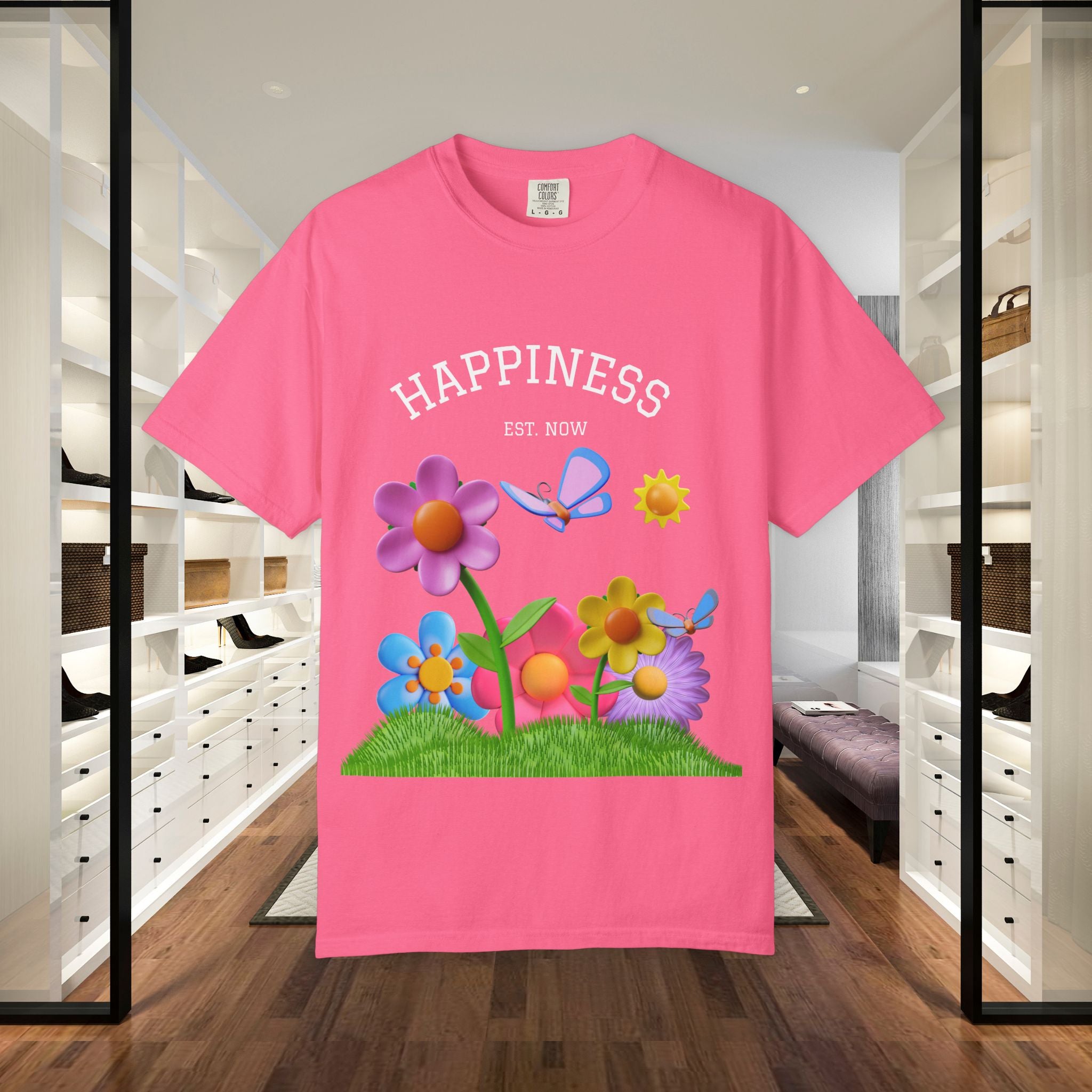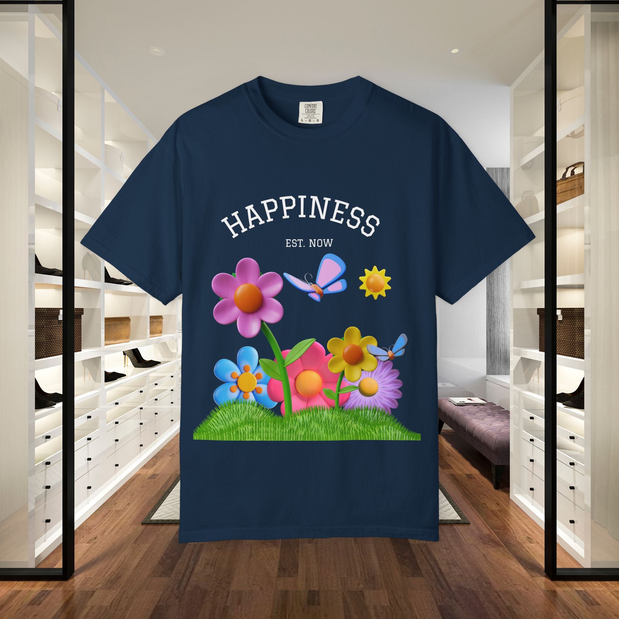 Cheerful Flower Graphic T-Shirt, Happiness Tee,