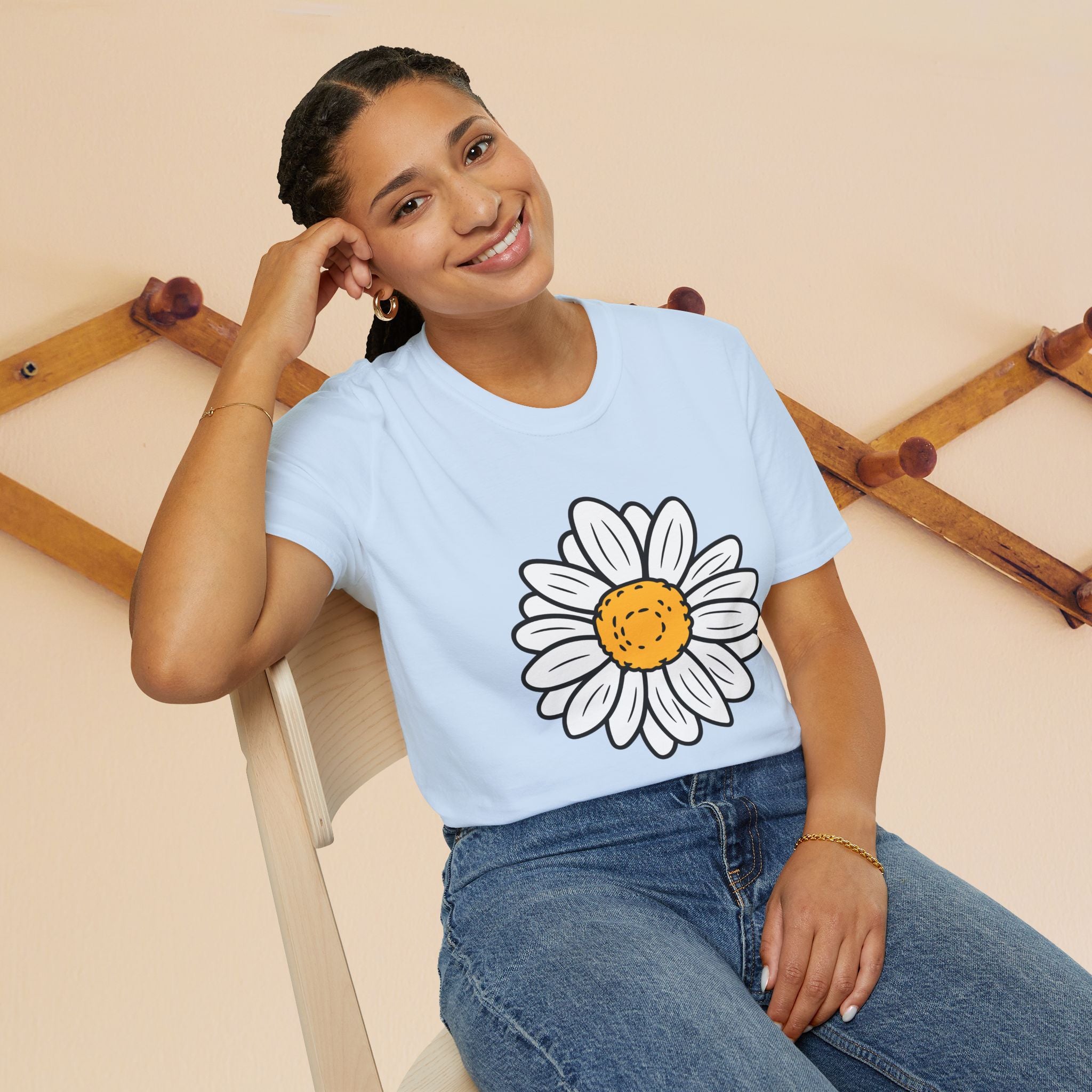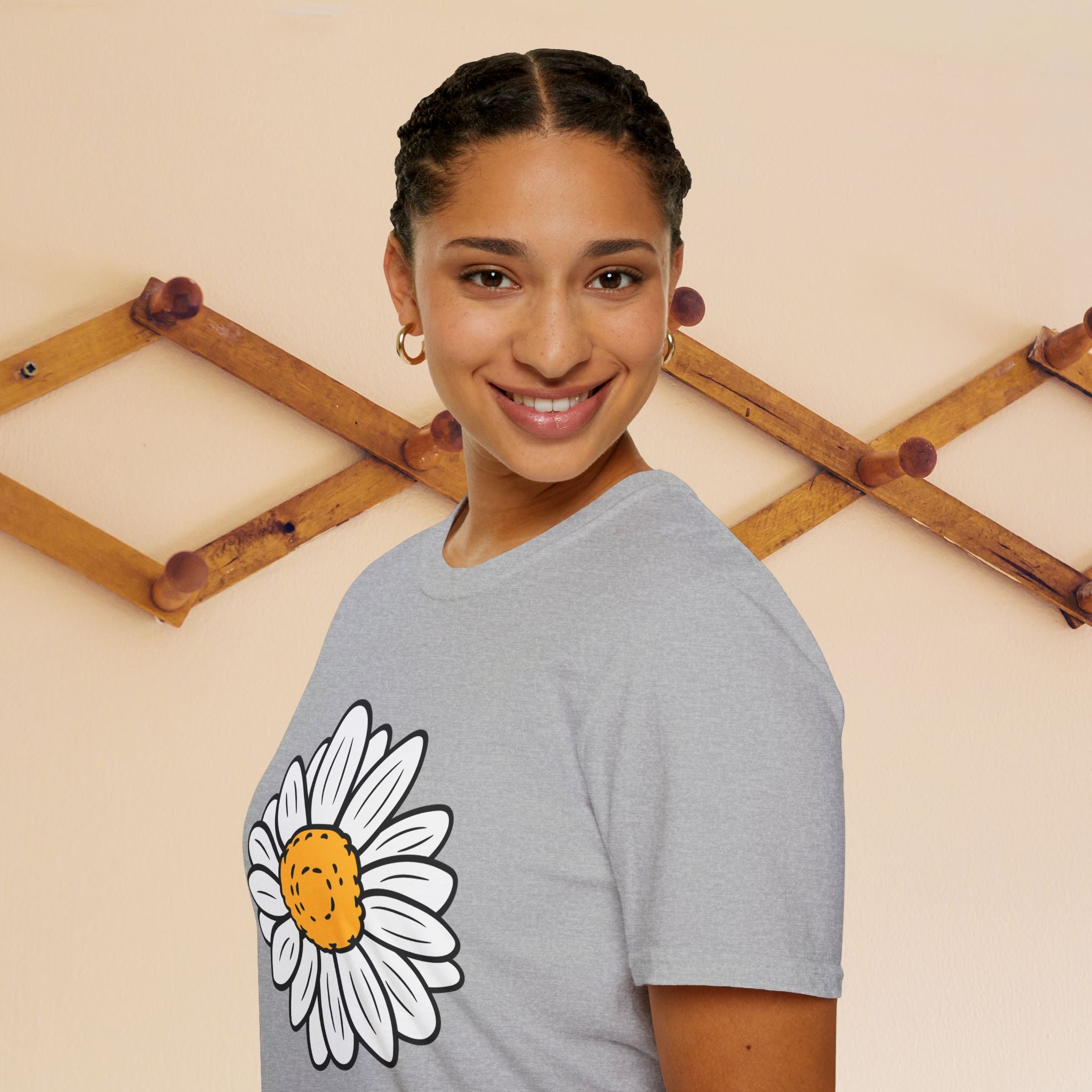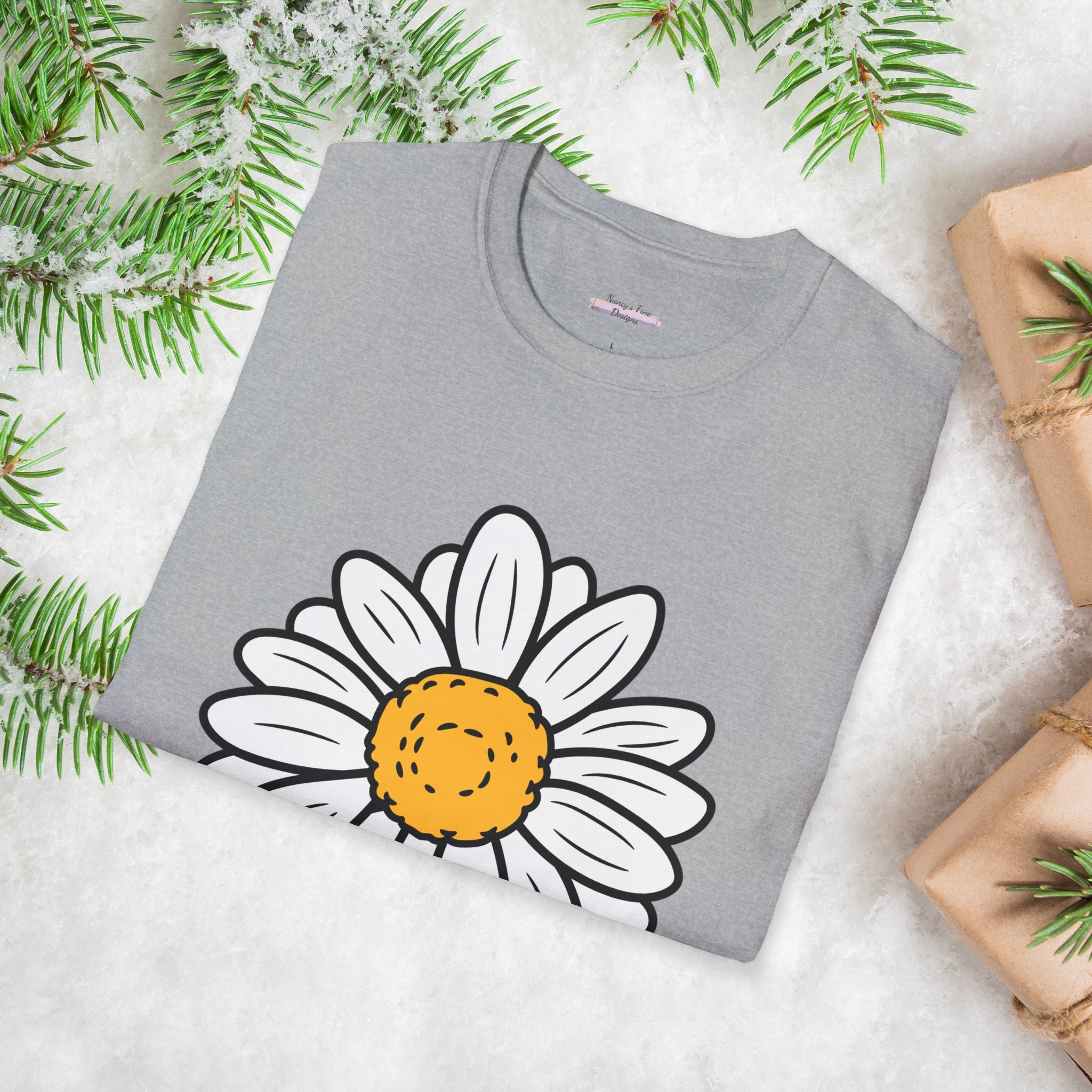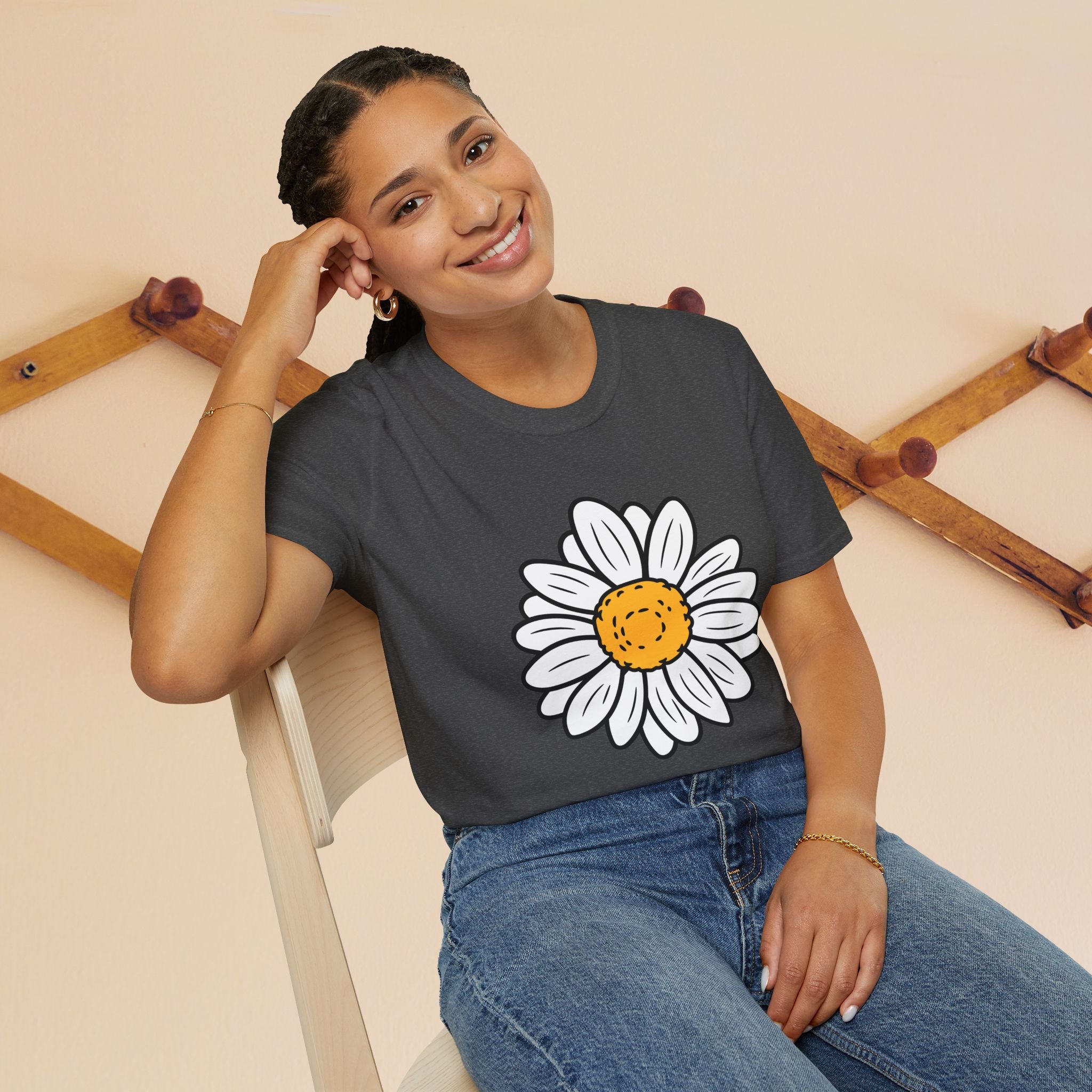 Embrace a casual yet stylish vibe with this unisex soft style t-shirt, featuring a cheerful daisy design that radiates positivity. Perfect for all occasions, this t-shirt makes a fantastic addition to any wardrobe, whether you're lounging at home, enjoying a sunny day out, or gathering with friends. Made of 100% ring-spun cotton for a lightweight feel.