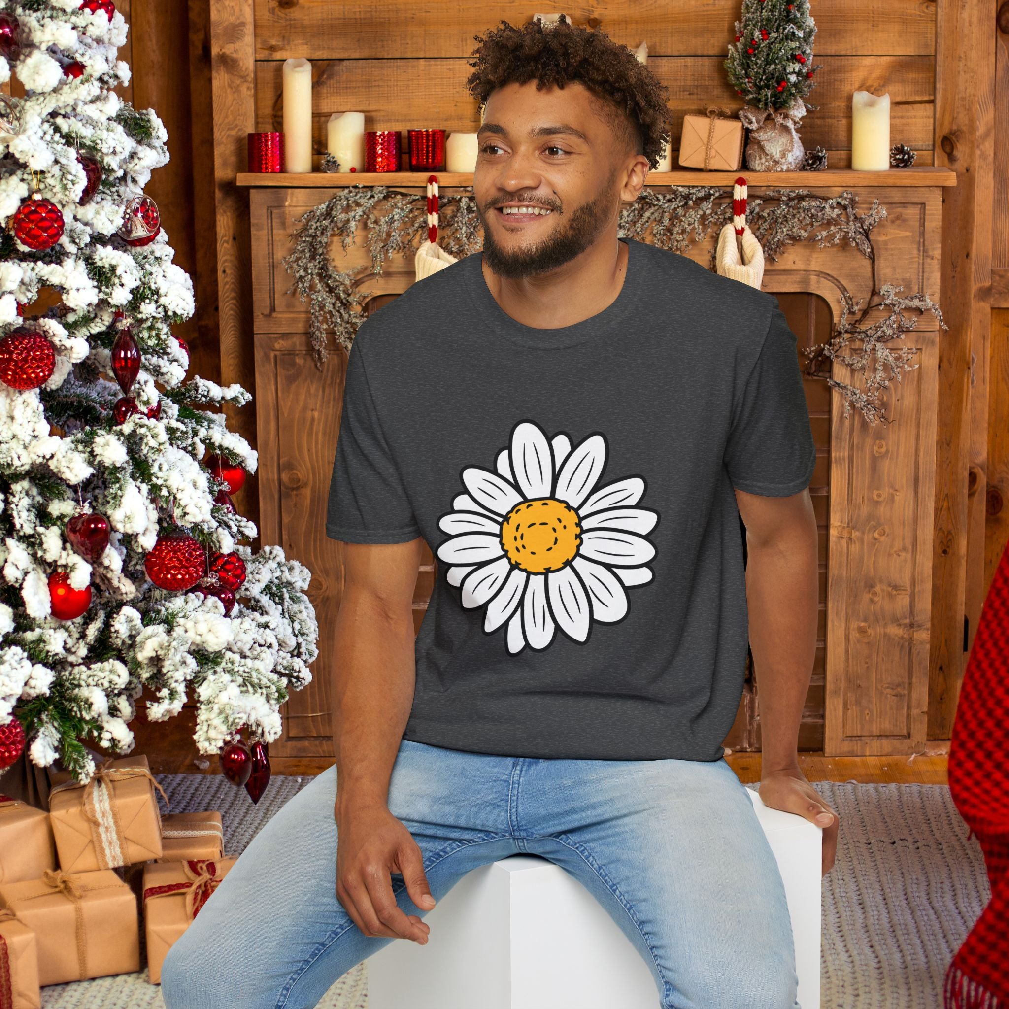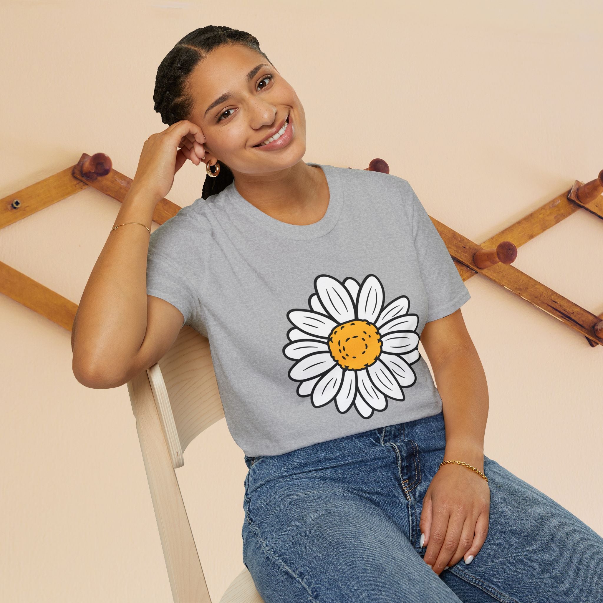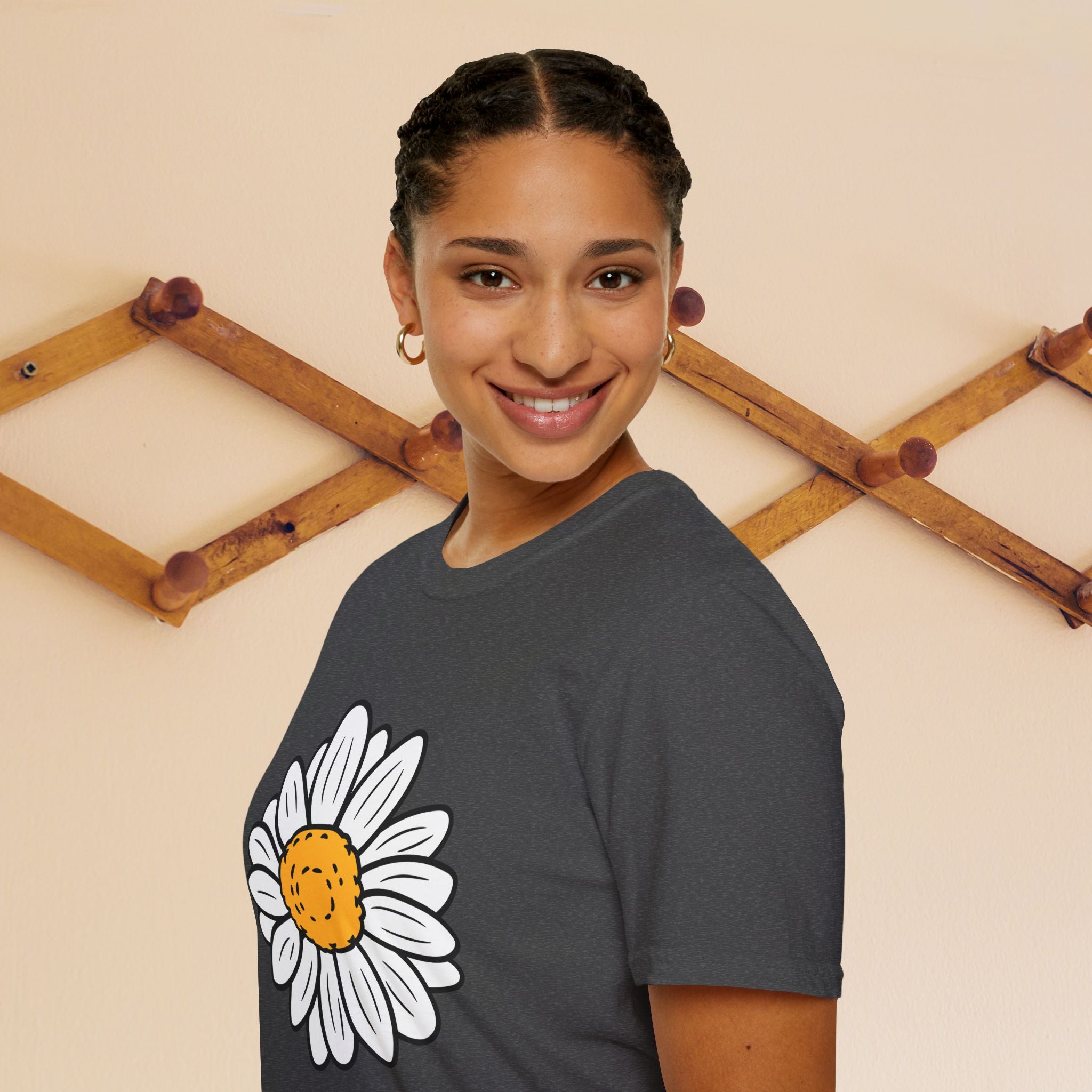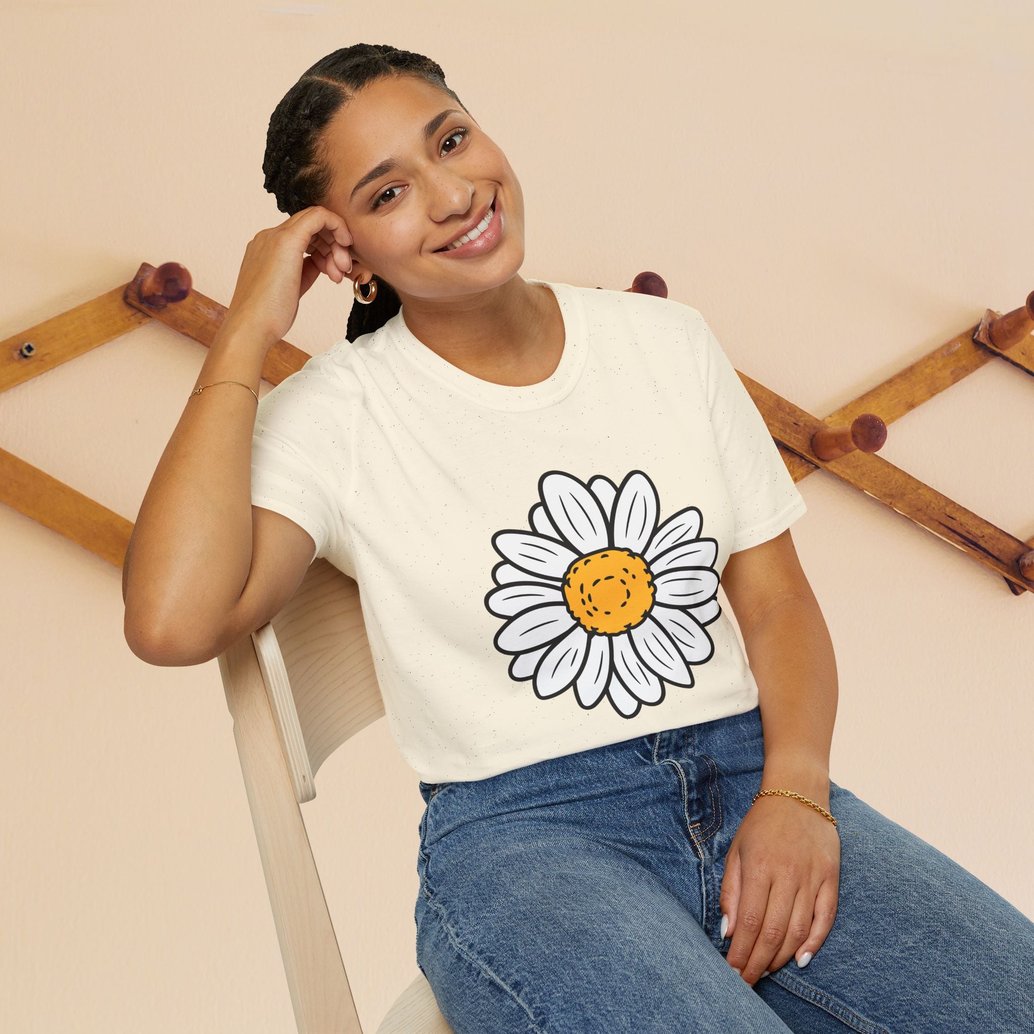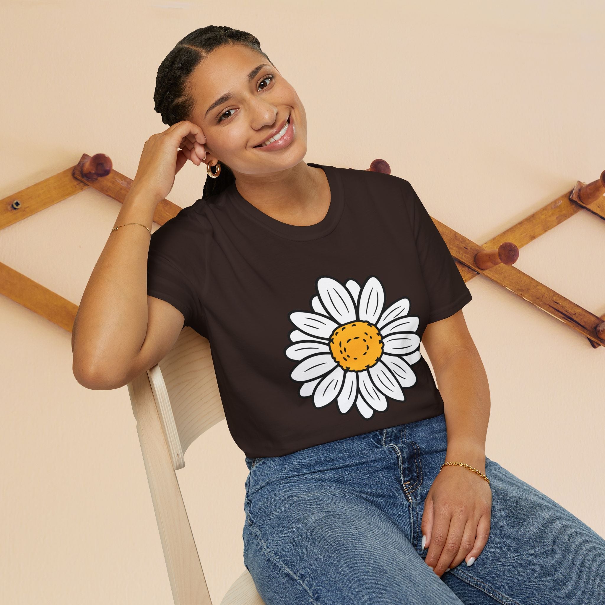 Embrace a casual yet stylish vibe with this unisex soft style t-shirt, featuring a cheerful daisy design that radiates positivity. Perfect for all occasions, this t-shirt makes a fantastic addition to any wardrobe, whether you're lounging at home, enjoying a sunny day out, or gathering with friends. Made of 100% ring-spun cotton for a lightweight feel.
