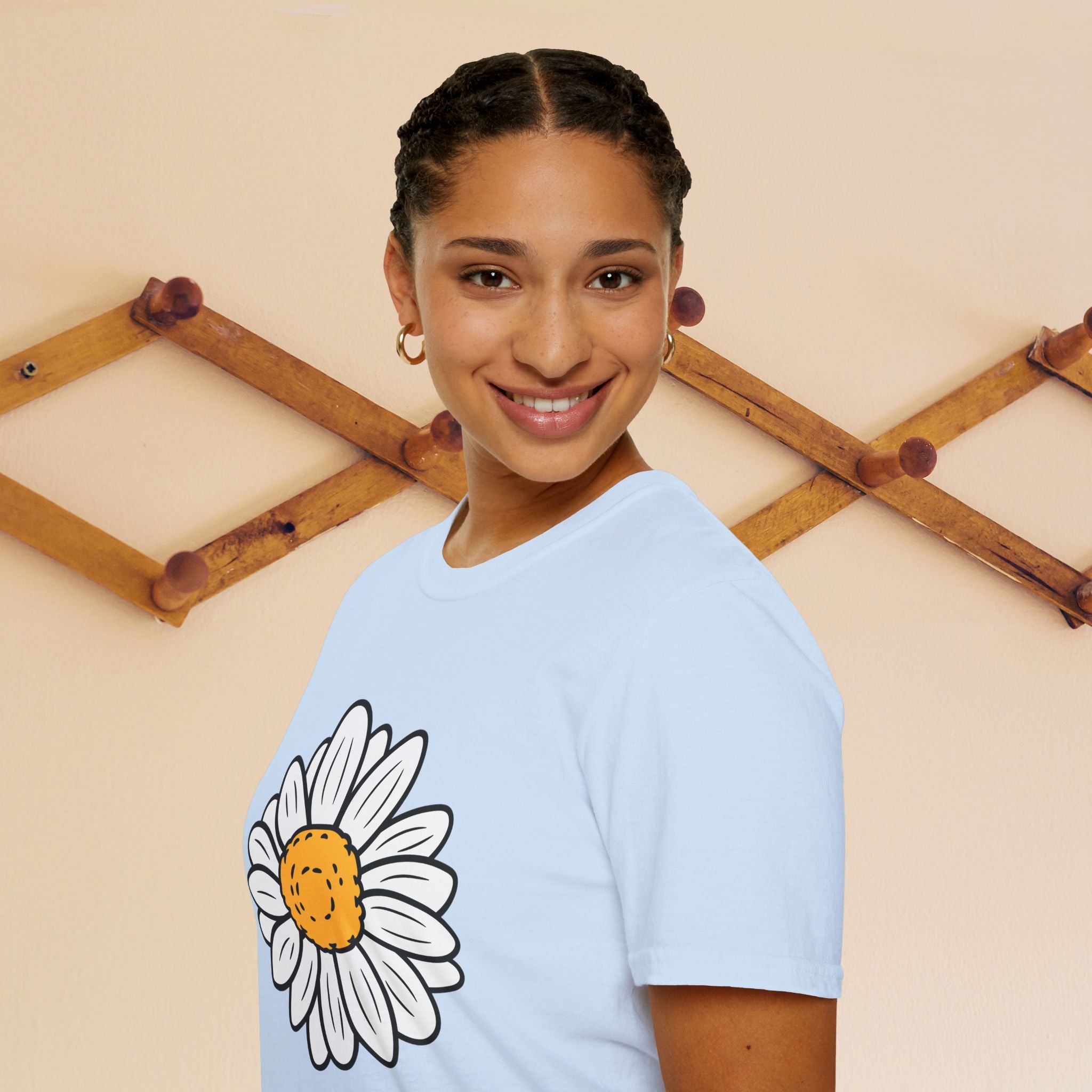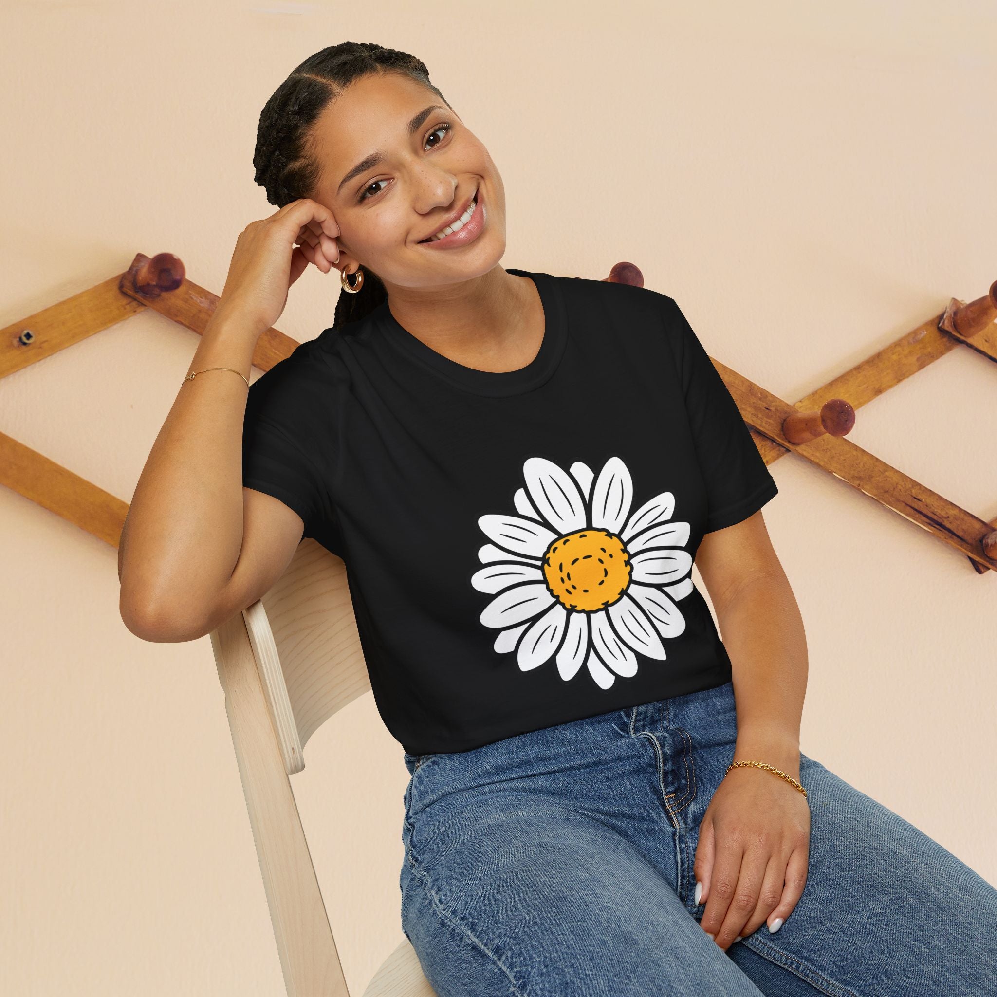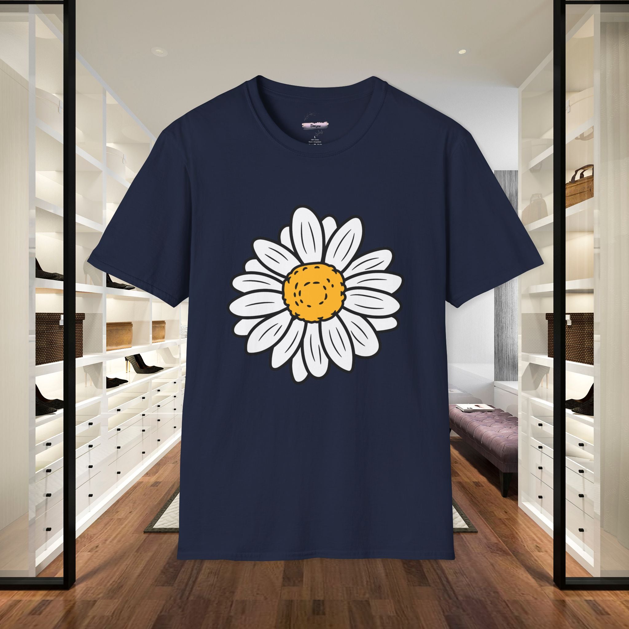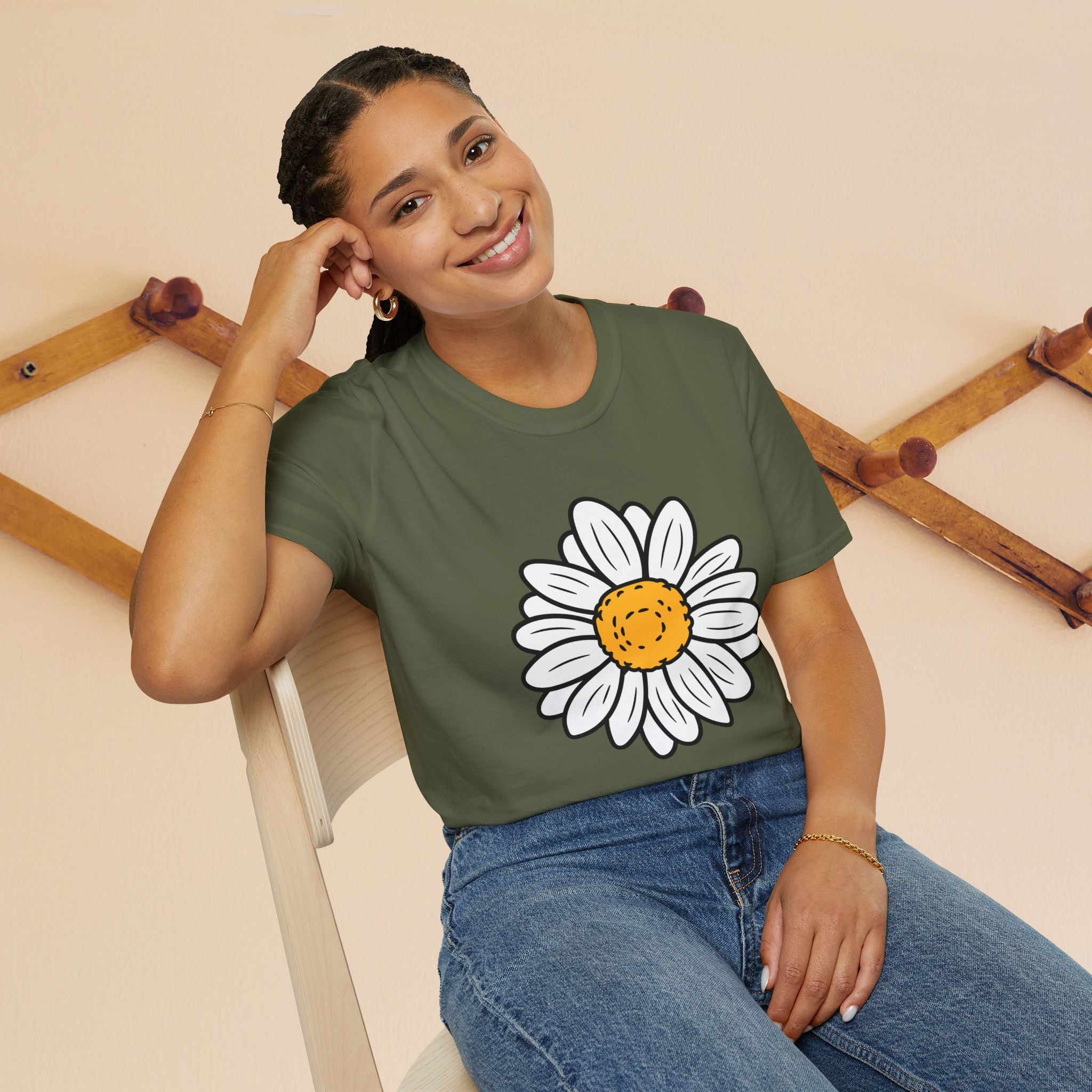 Embrace a casual yet stylish vibe with this unisex soft style t-shirt, featuring a cheerful daisy design that radiates positivity. Perfect for all occasions, this t-shirt makes a fantastic addition to any wardrobe, whether you're lounging at home, enjoying a sunny day out, or gathering with friends. Made of 100% ring-spun cotton for a lightweight feel.