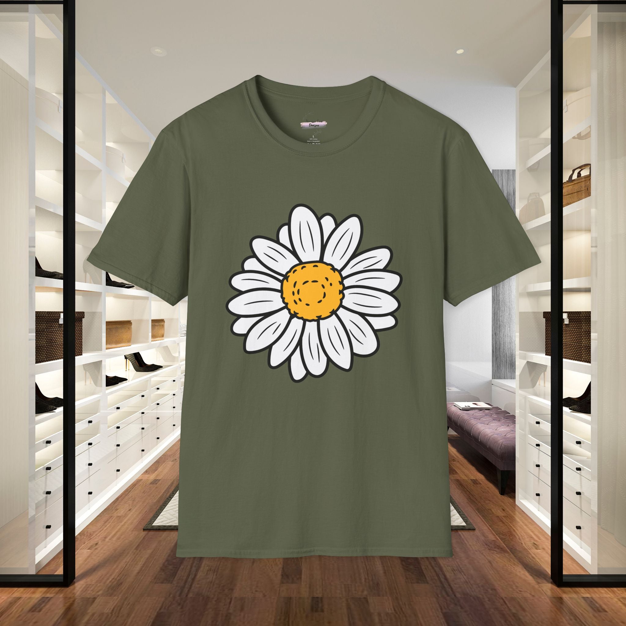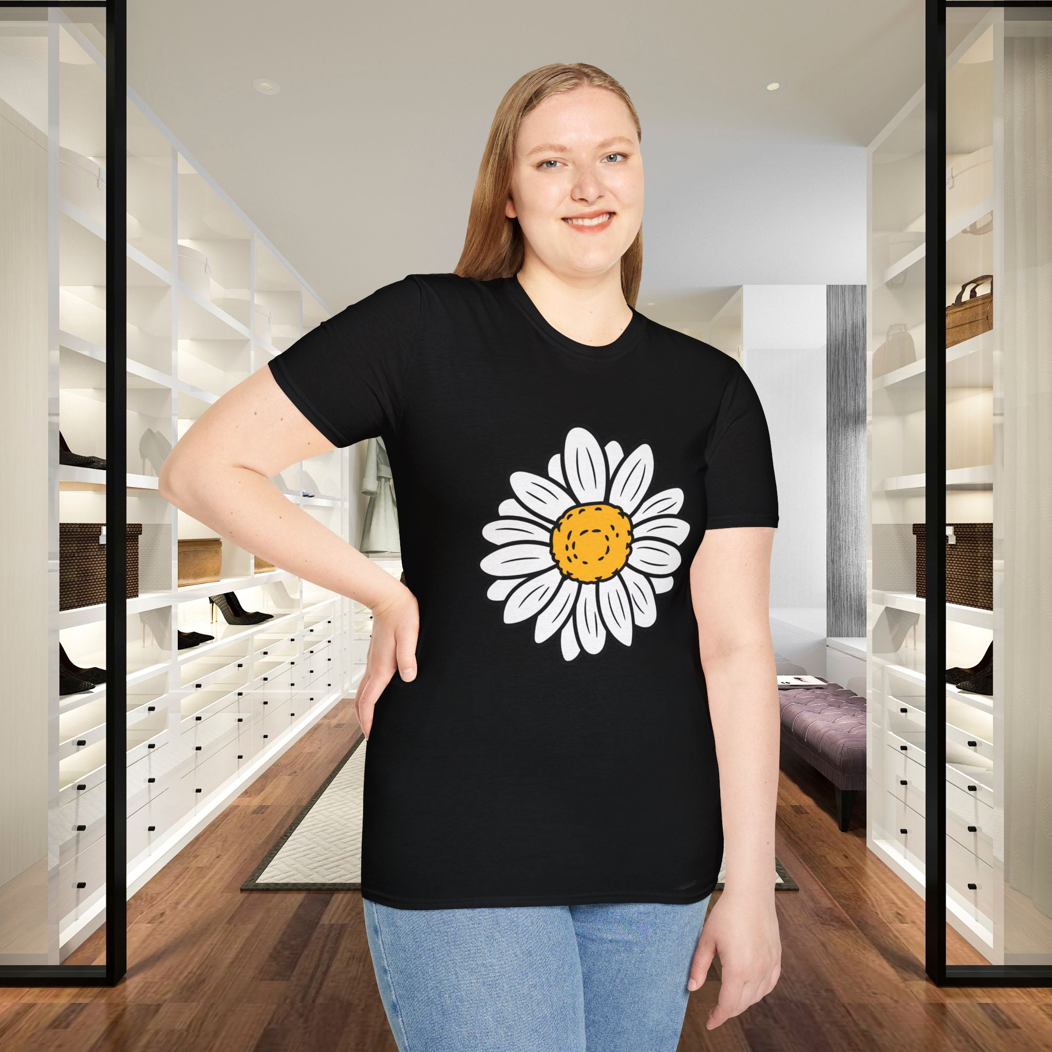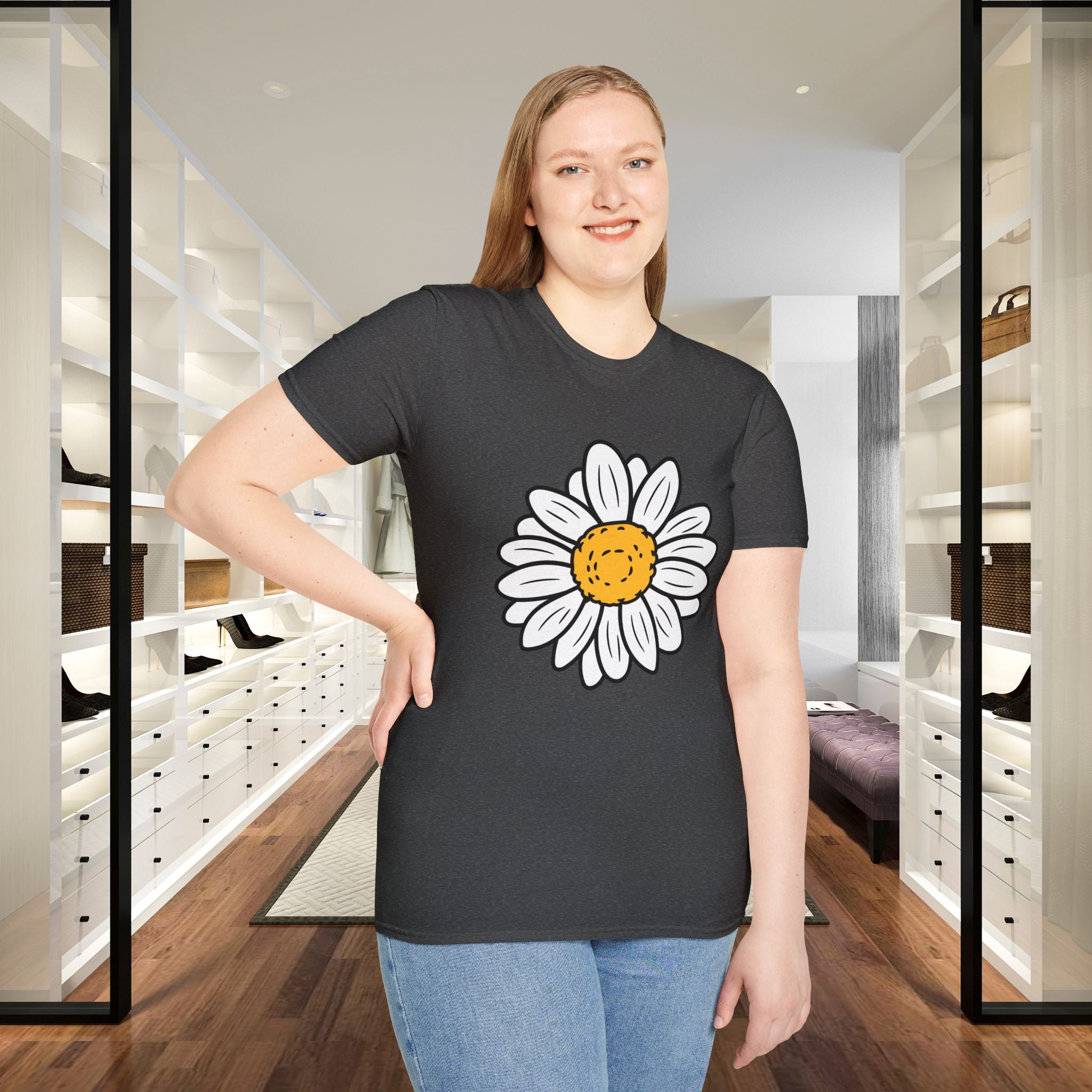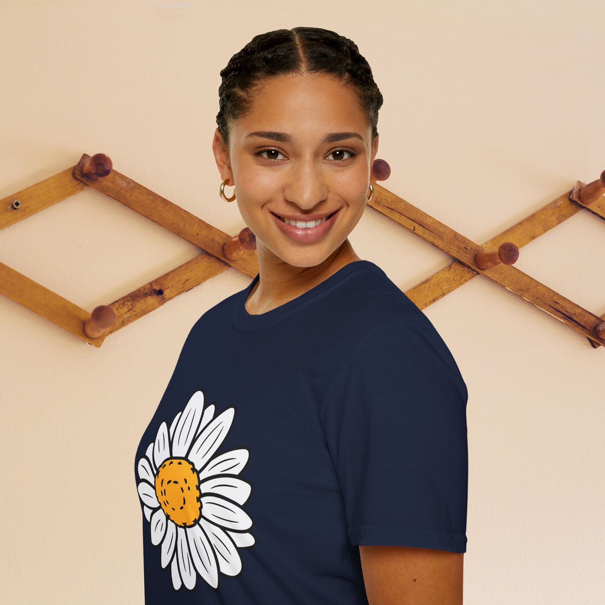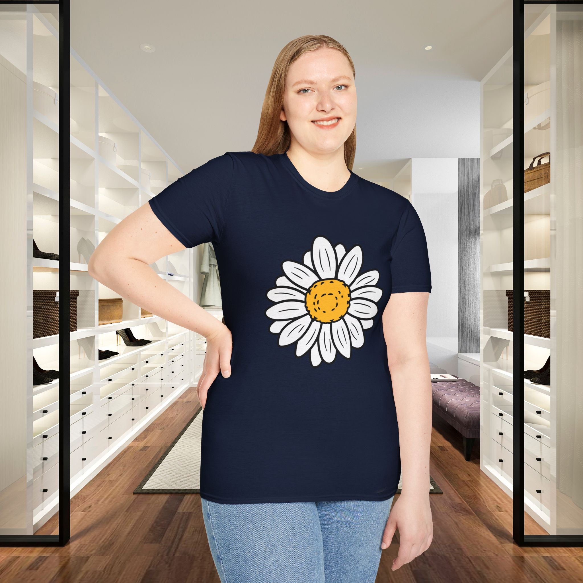 Embrace a casual yet stylish vibe with this unisex soft style t-shirt, featuring a cheerful daisy design that radiates positivity. Perfect for all occasions, this t-shirt makes a fantastic addition to any wardrobe, whether you're lounging at home, enjoying a sunny day out, or gathering with friends. Made of 100% ring-spun cotton for a lightweight feel.