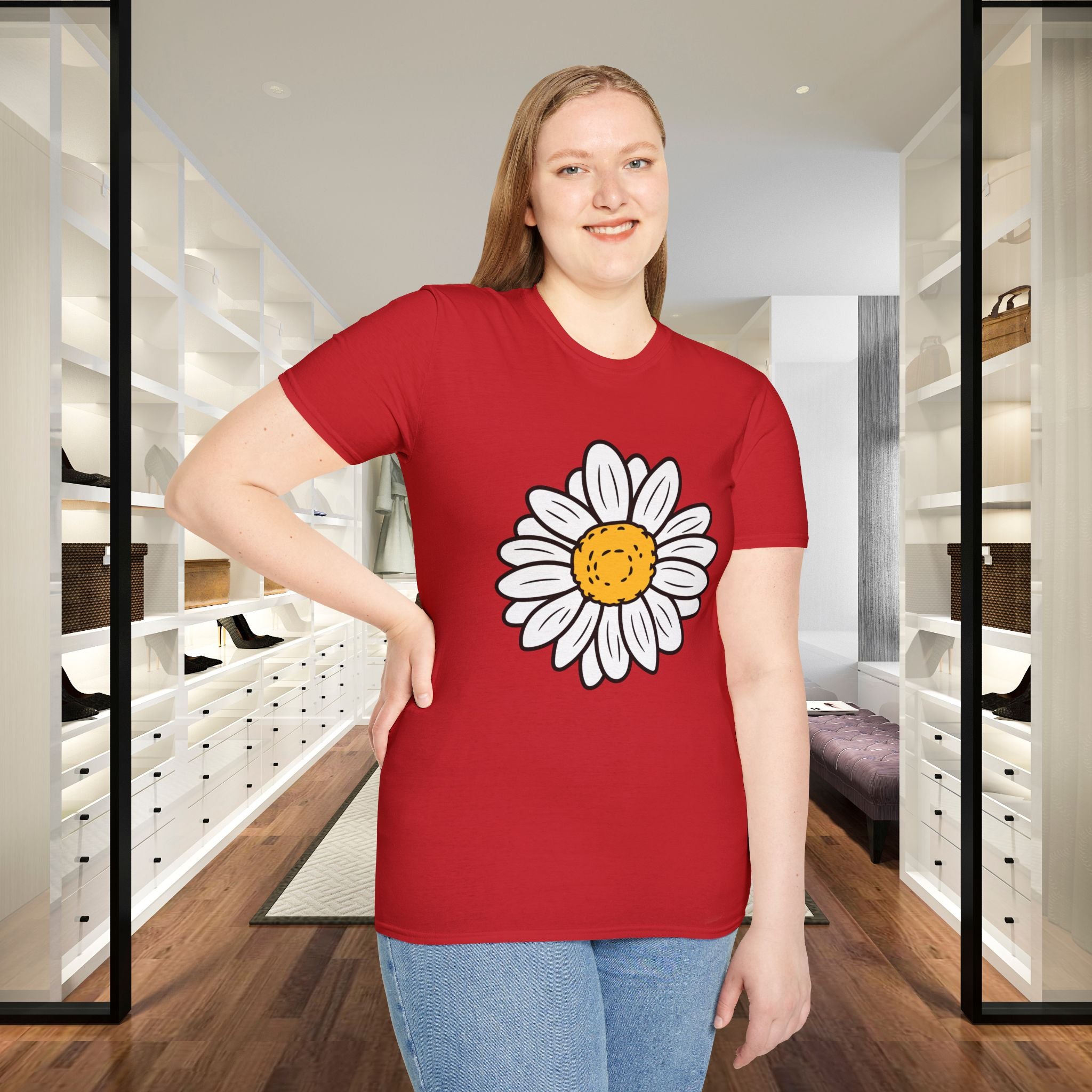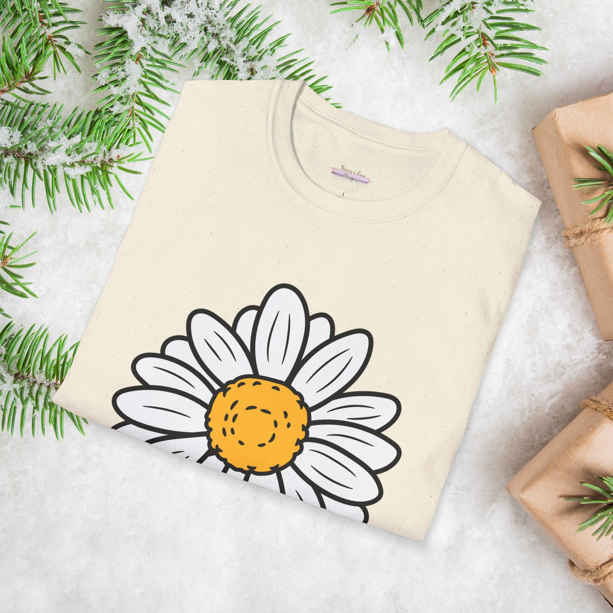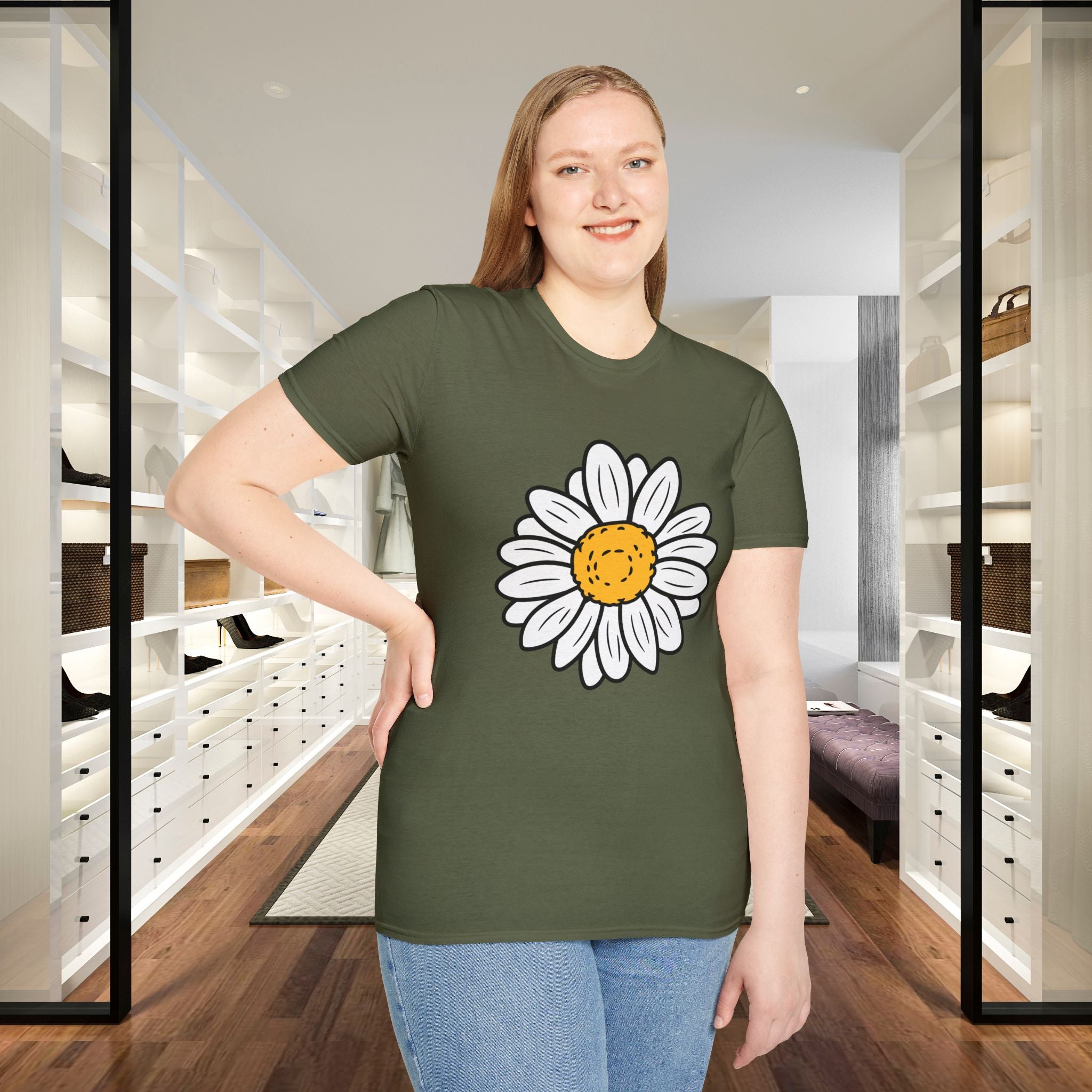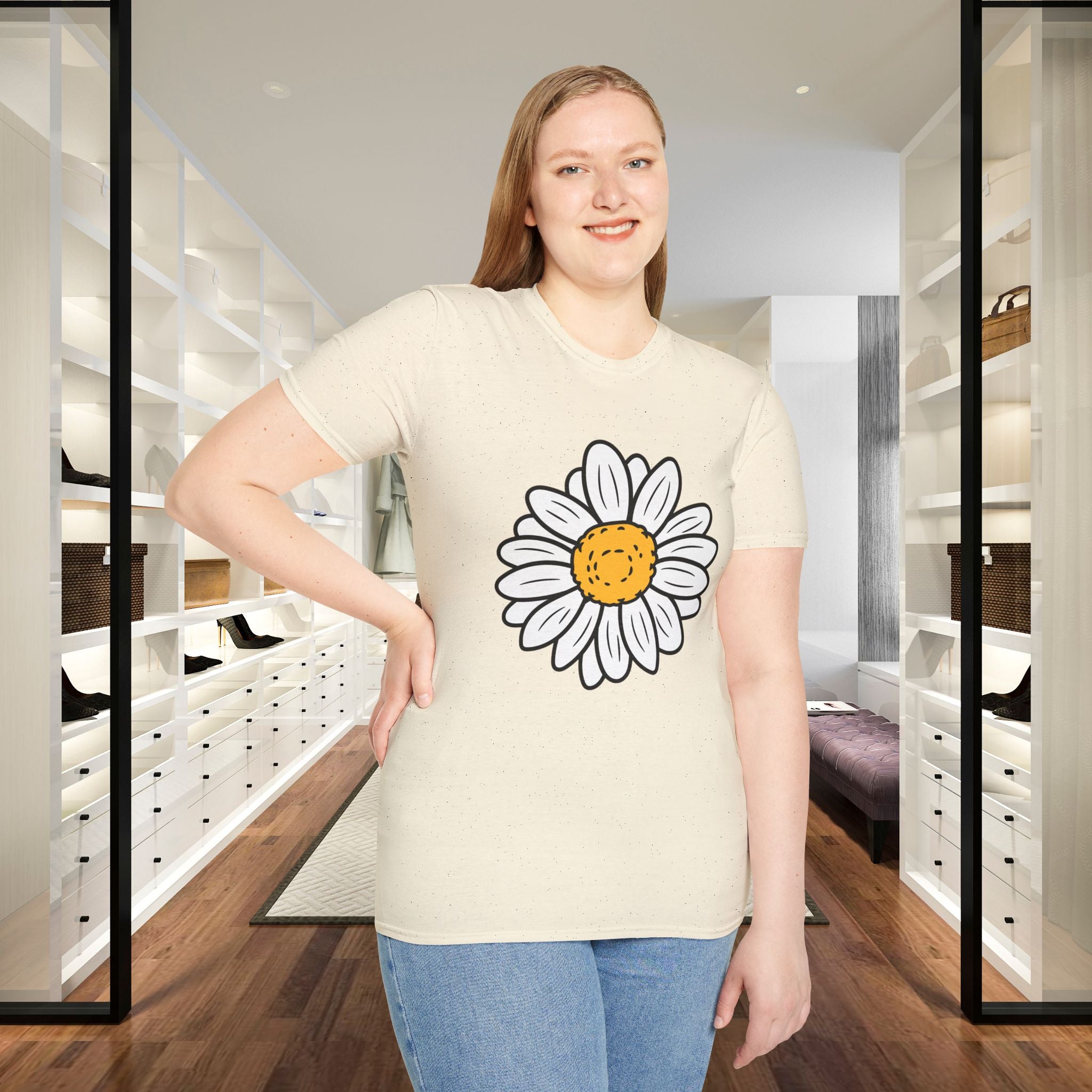 Embrace a casual yet stylish vibe with this unisex soft style t-shirt, featuring a cheerful daisy design that radiates positivity. Perfect for all occasions, this t-shirt makes a fantastic addition to any wardrobe, whether you're lounging at home, enjoying a sunny day out, or gathering with friends. Made of 100% ring-spun cotton for a lightweight feel.