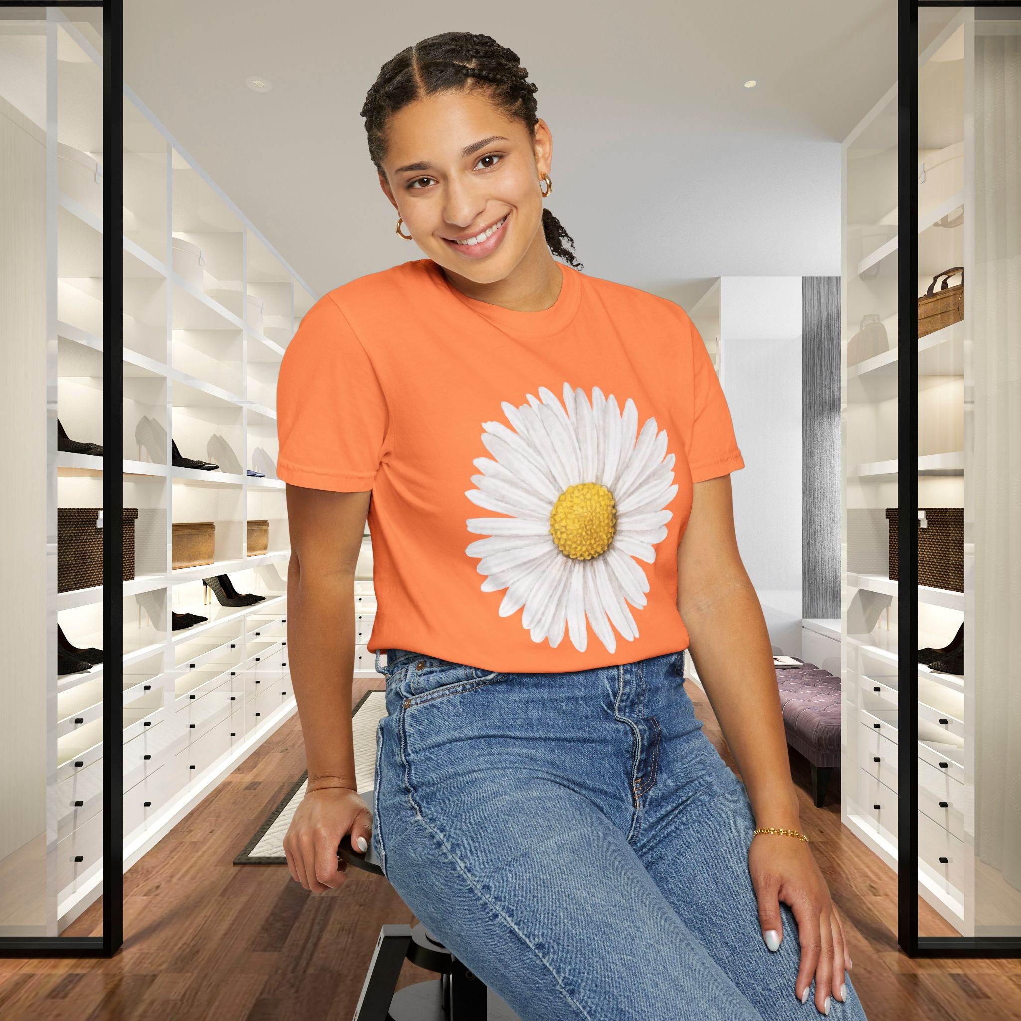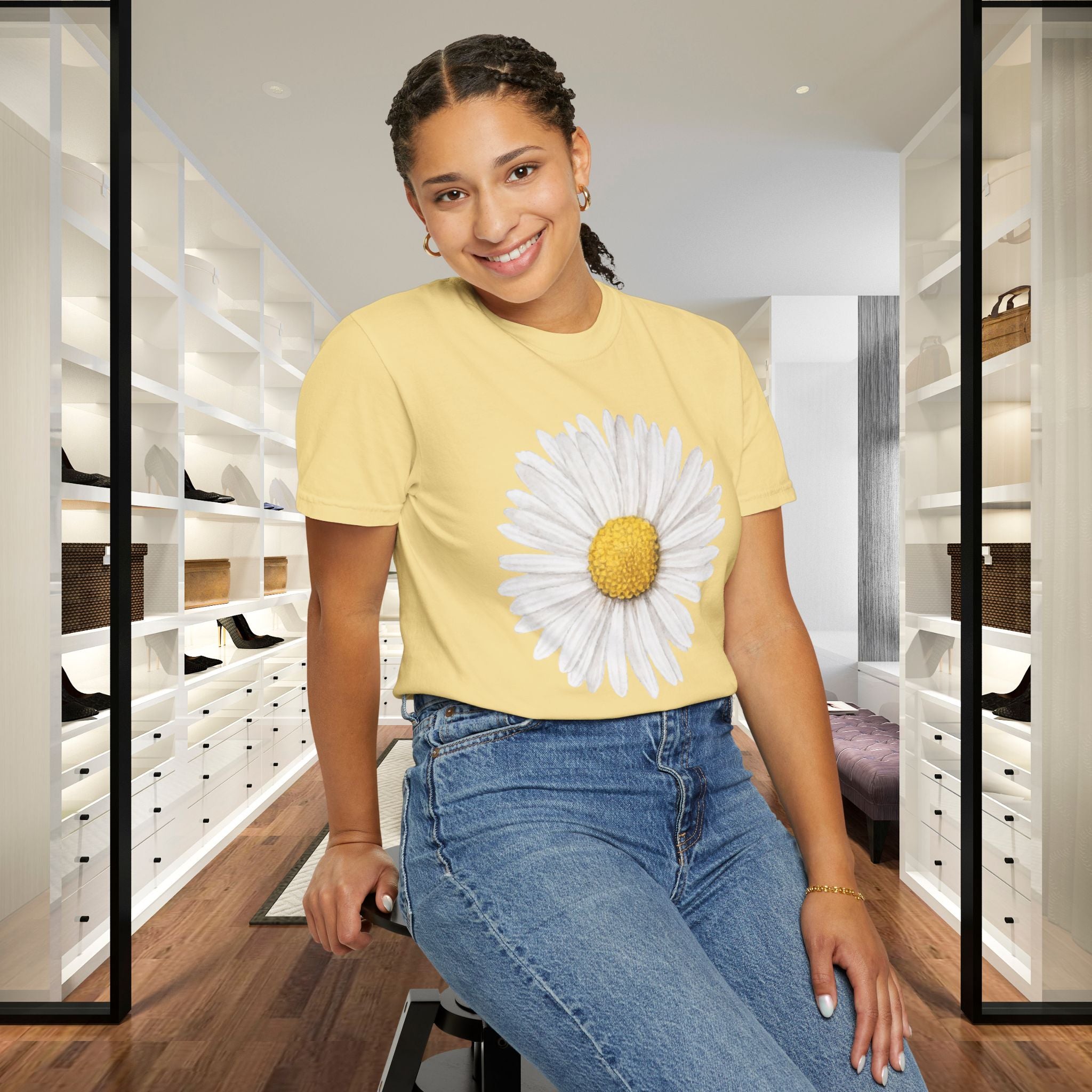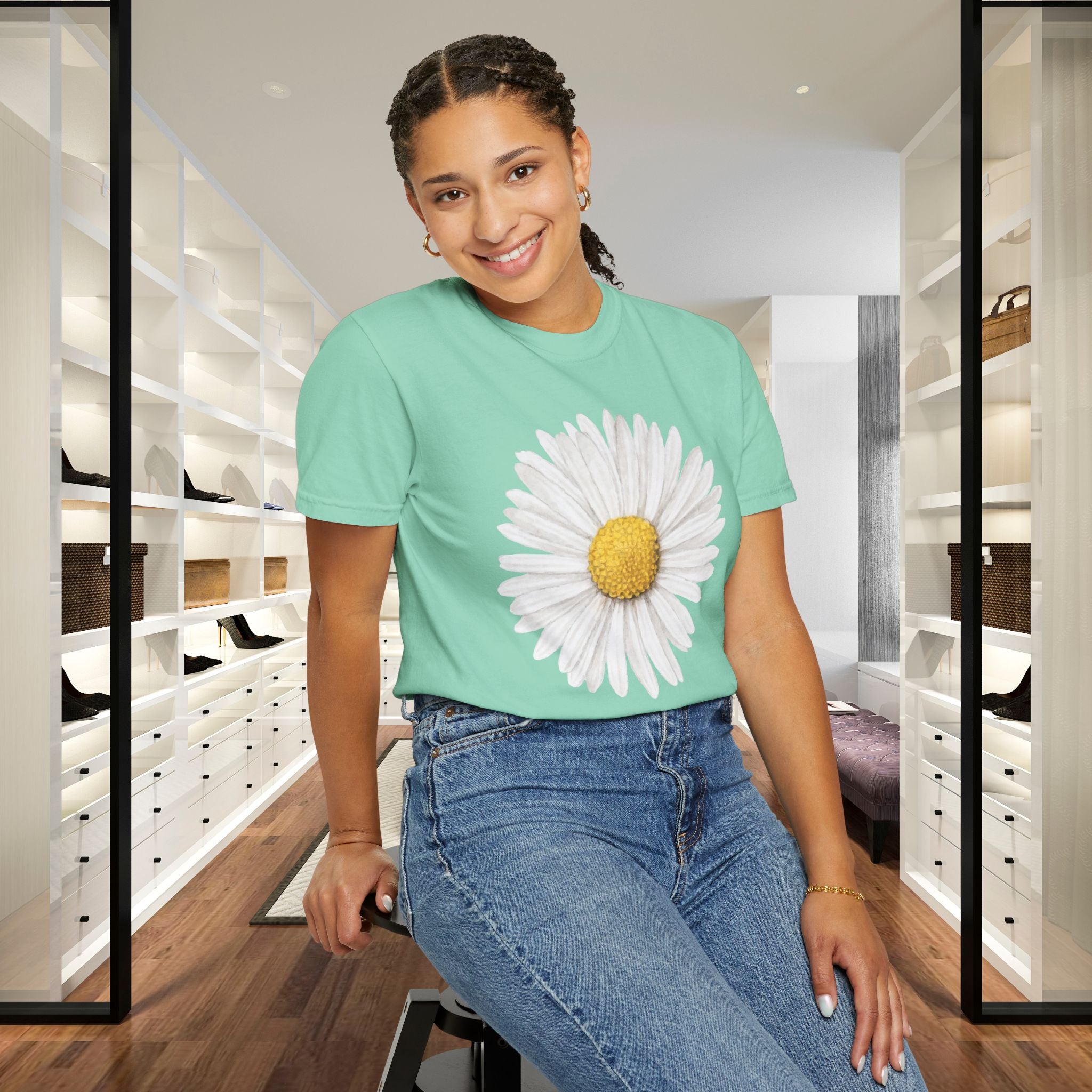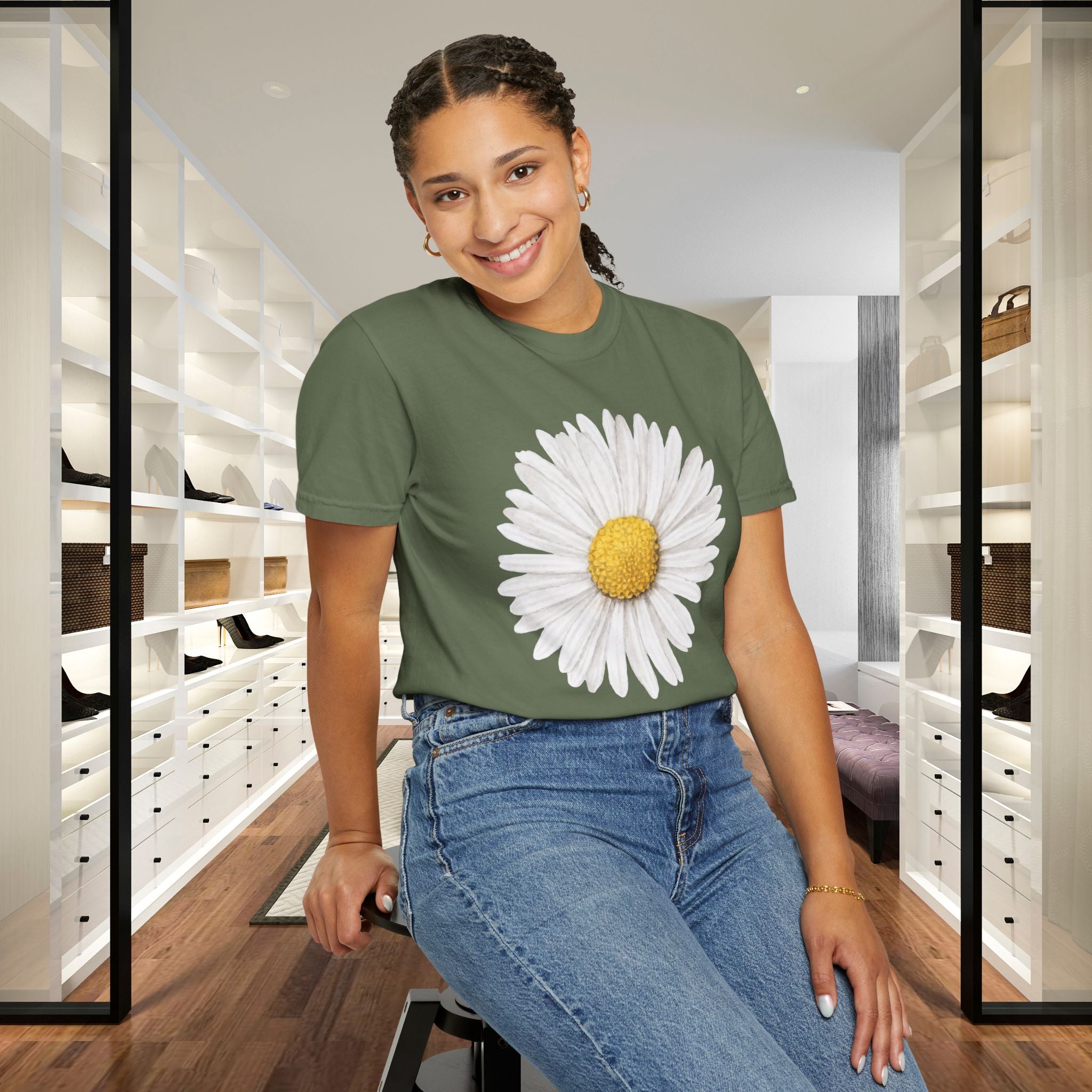 Experience comfort and style with this unisex garment-dyed t-shirt. Featuring a beautiful daisy design, it embodies a relaxed and cheerful vibe, perfect for casual outings or lounging at home. The soft fabric and inviting color palette make it an ideal choice for spring and summer wear.  Add a splash of joy to your wardrobe, and share the positive energy with friends and family!