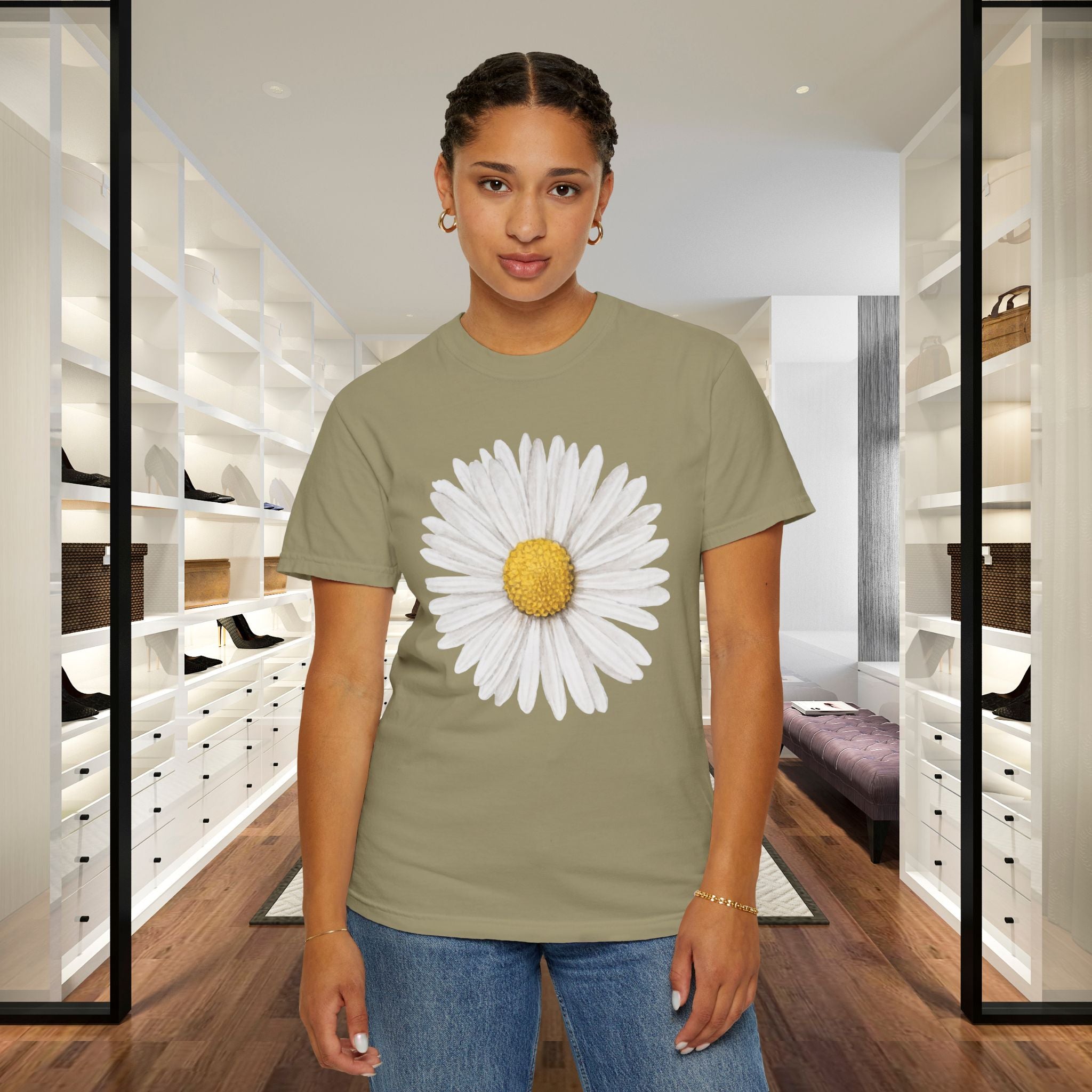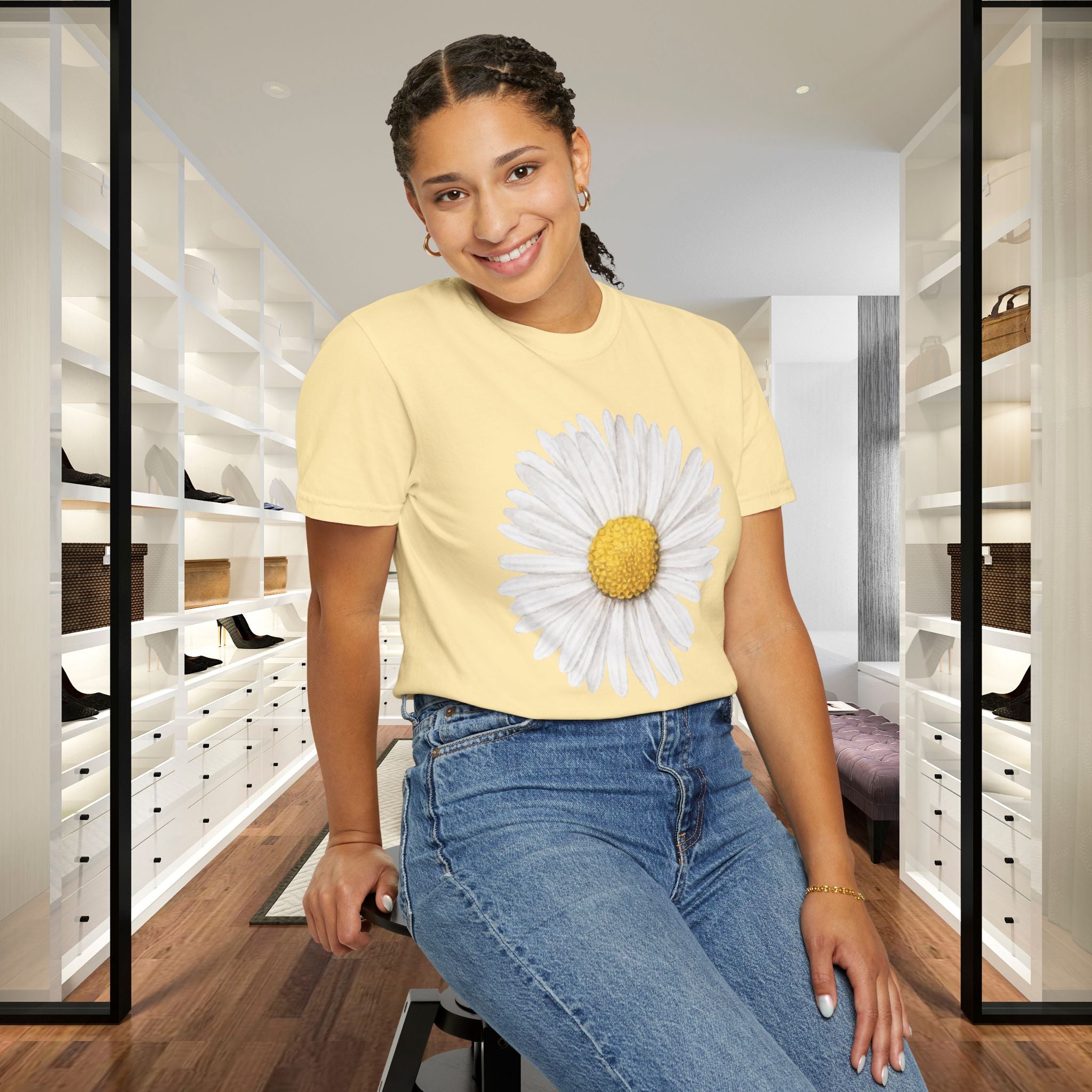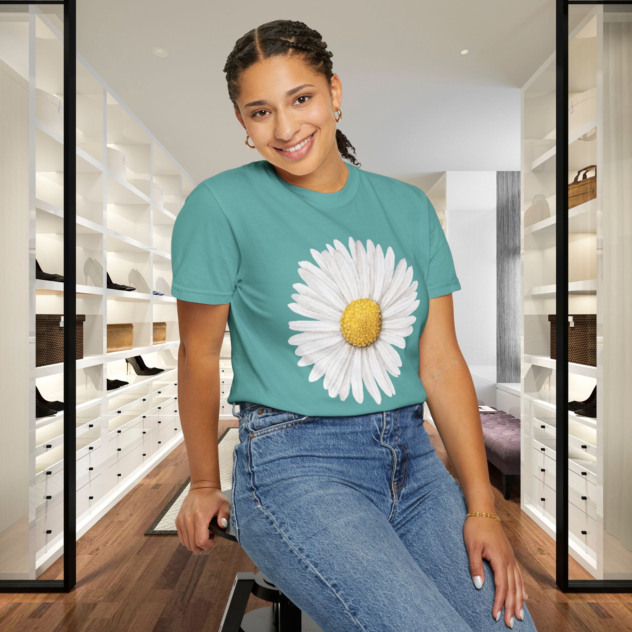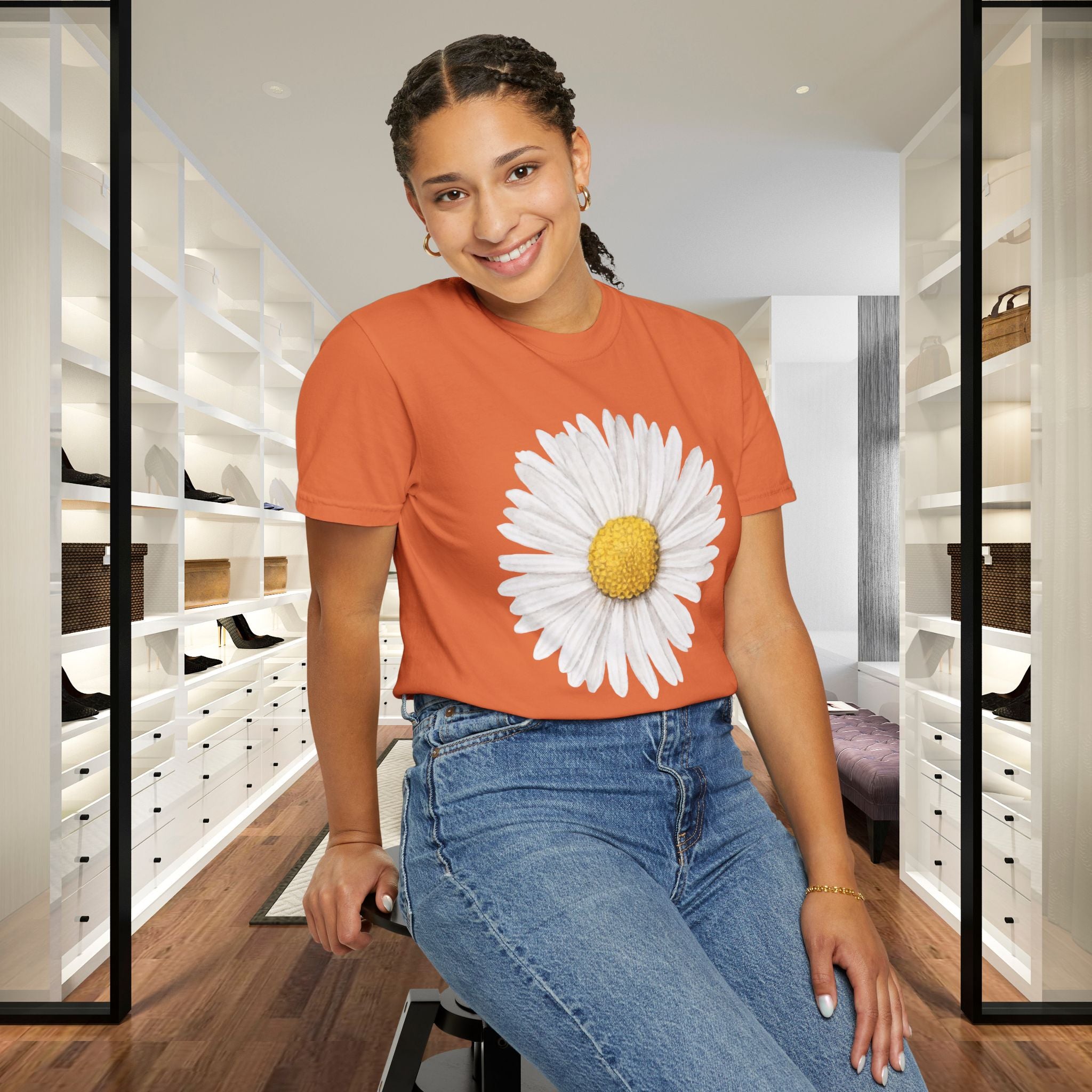 Experience comfort and style with this unisex garment-dyed t-shirt. Featuring a beautiful daisy design, it embodies a relaxed and cheerful vibe, perfect for casual outings or lounging at home. The soft fabric and inviting color palette make it an ideal choice for spring and summer wear.  Add a splash of joy to your wardrobe, and share the positive energy with friends and family!