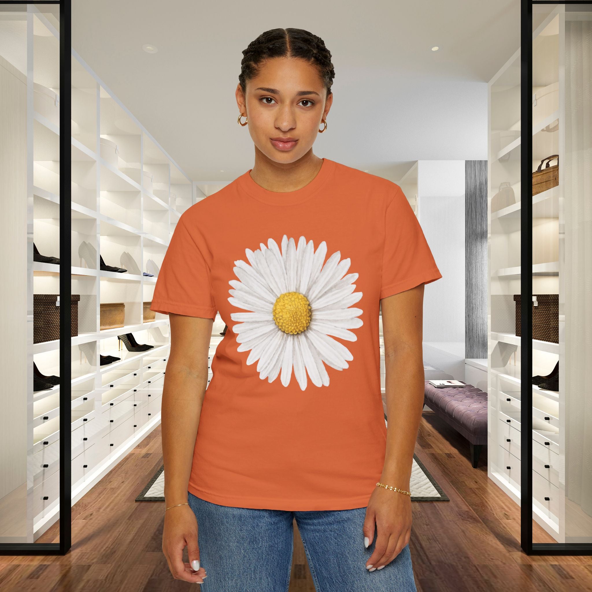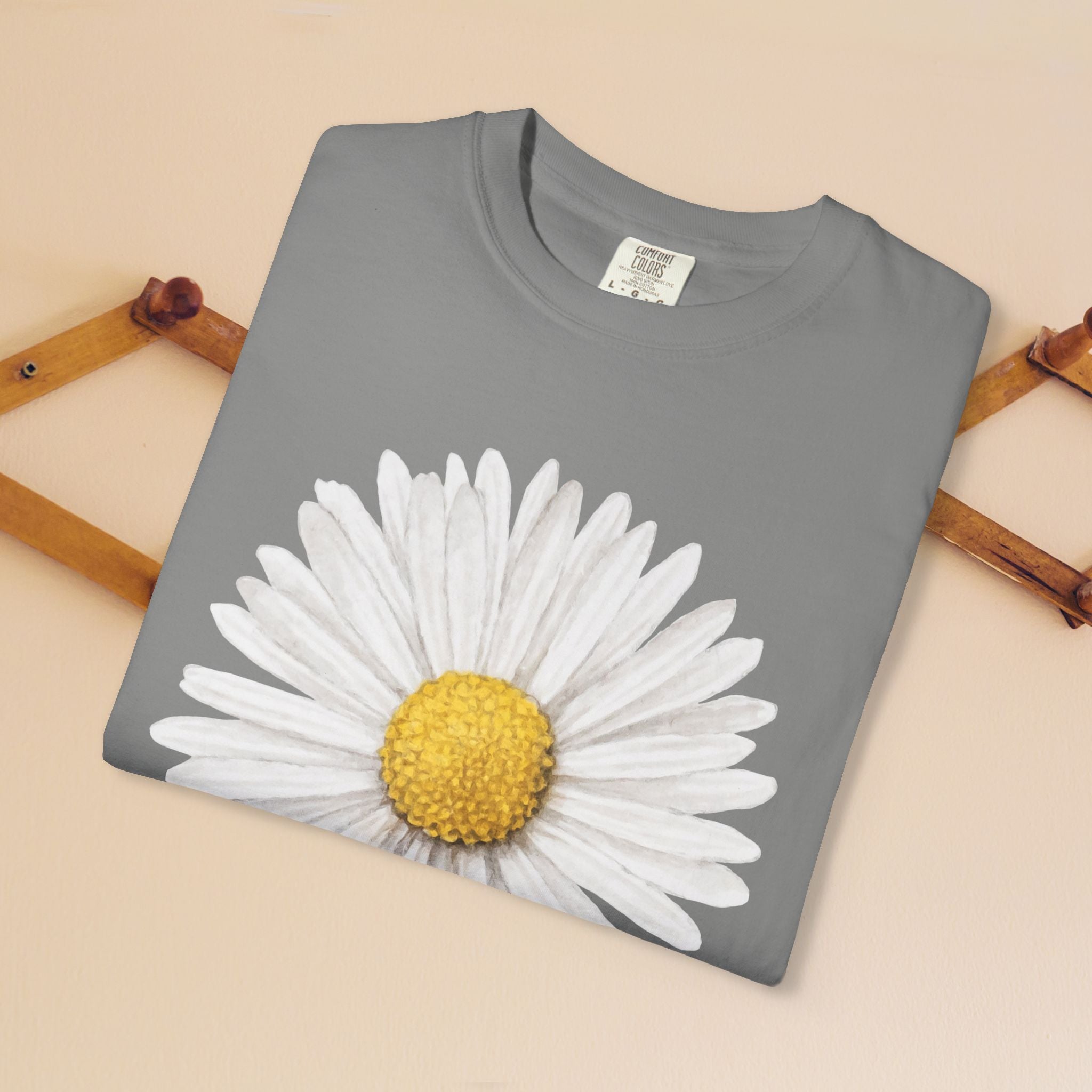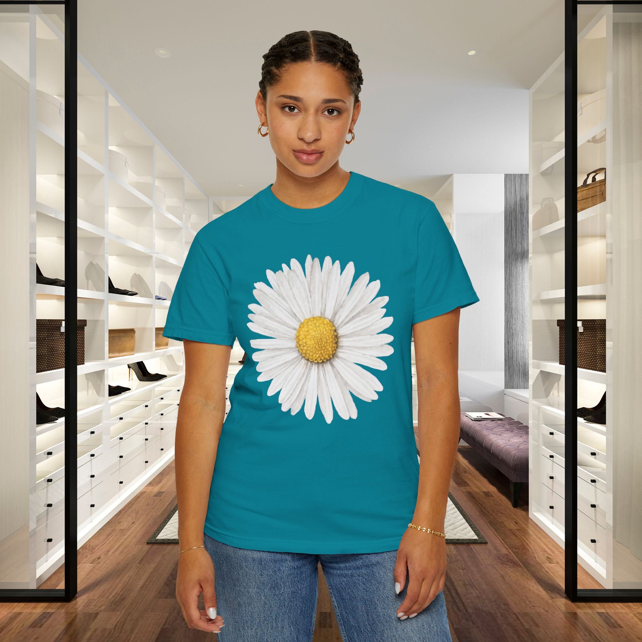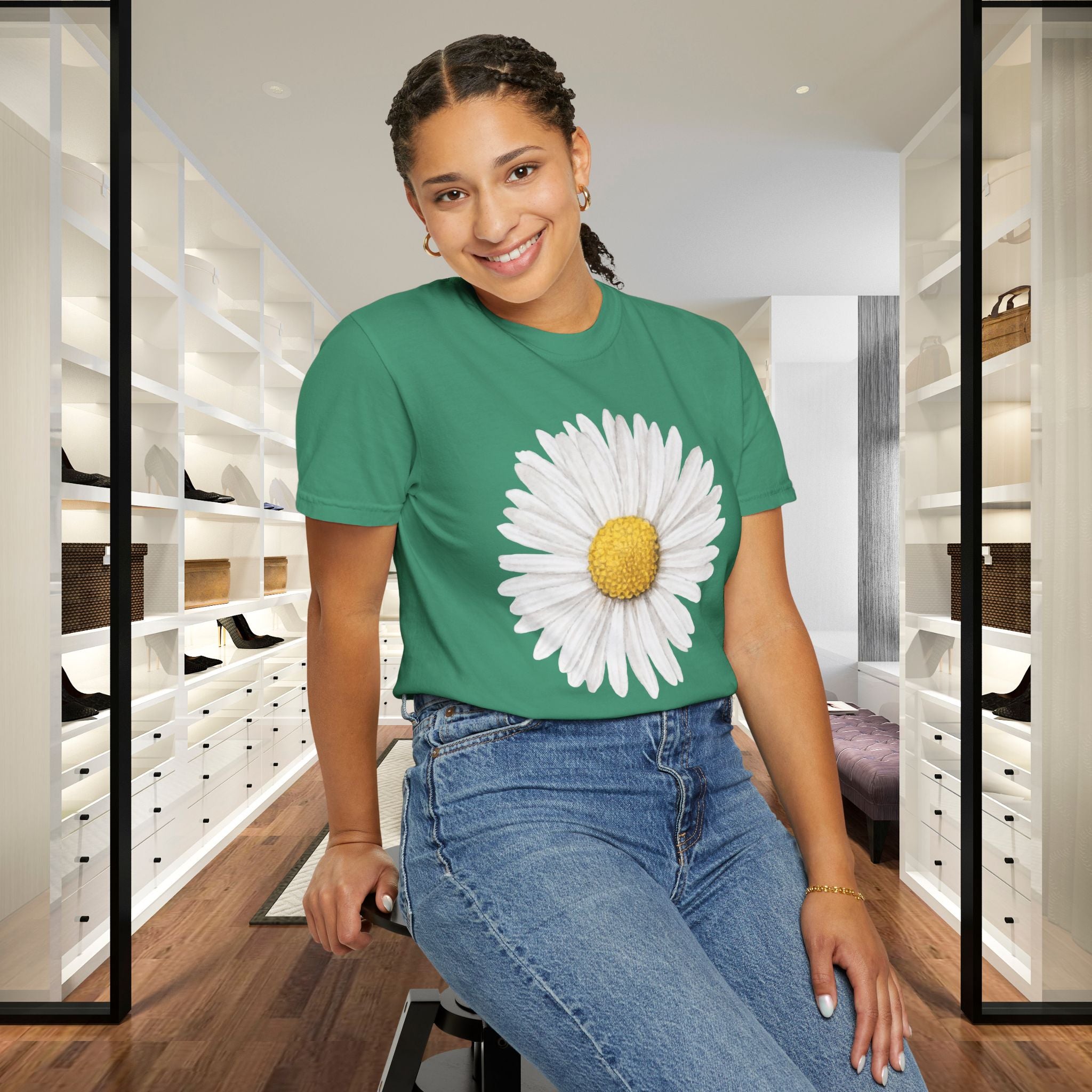 Experience comfort and style with this unisex garment-dyed t-shirt. Featuring a beautiful daisy design, it embodies a relaxed and cheerful vibe, perfect for casual outings or lounging at home. The soft fabric and inviting color palette make it an ideal choice for spring and summer wear.  Add a splash of joy to your wardrobe, and share the positive energy with friends and family!