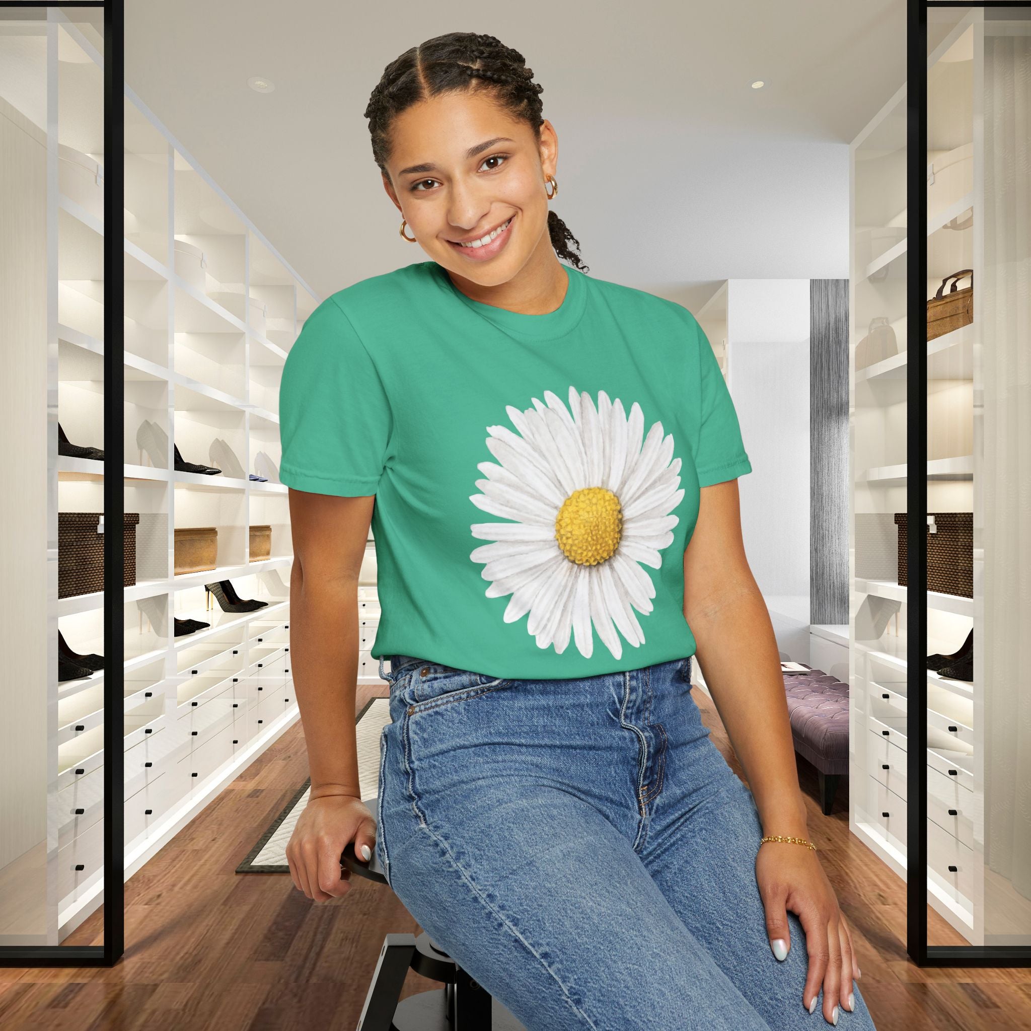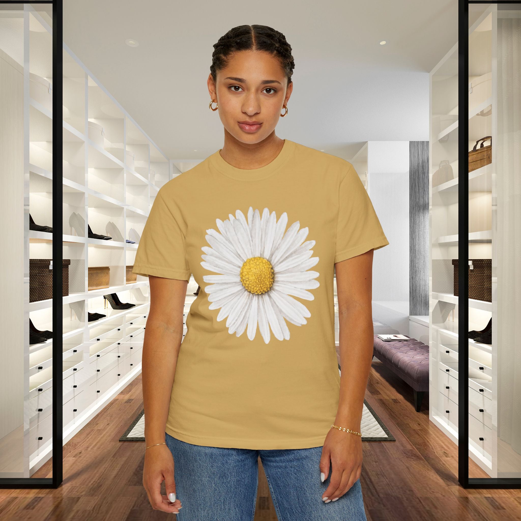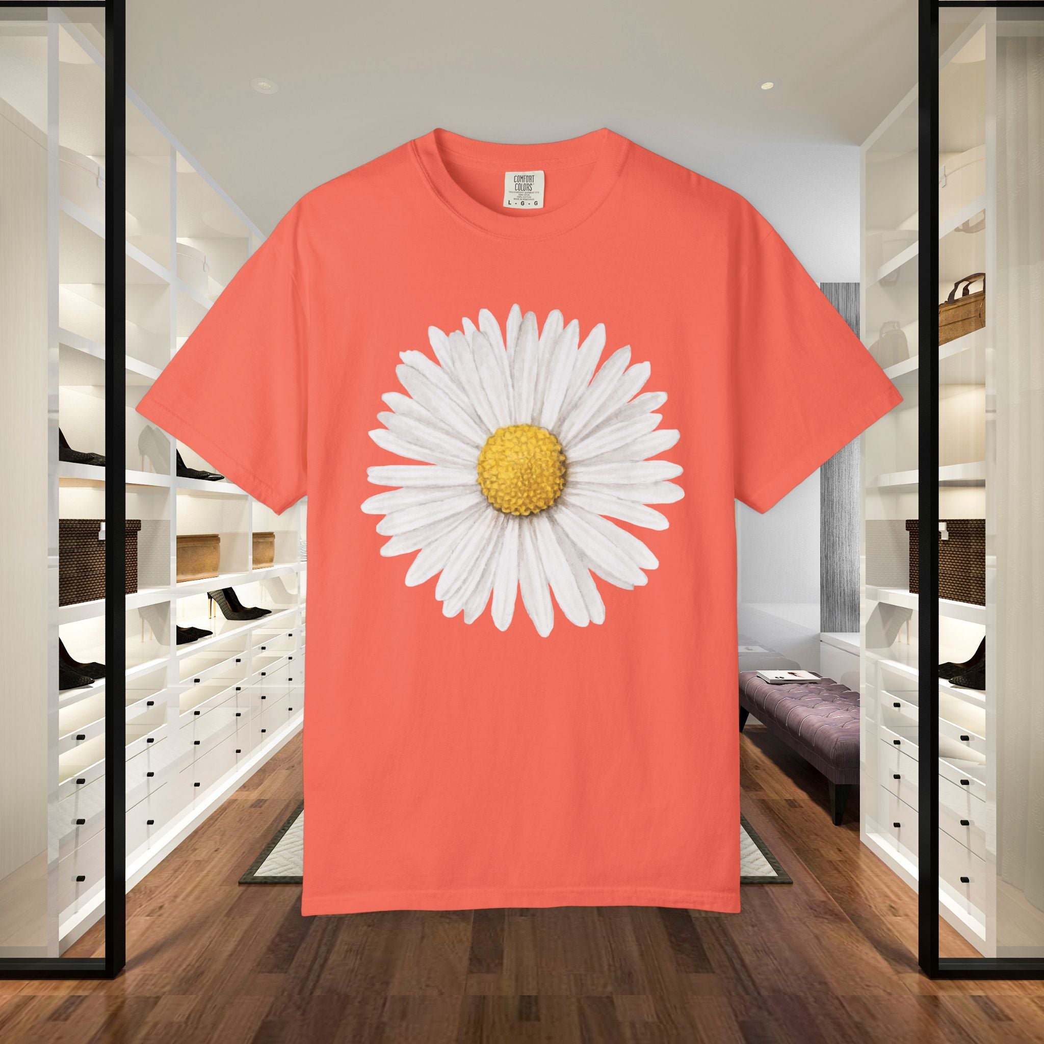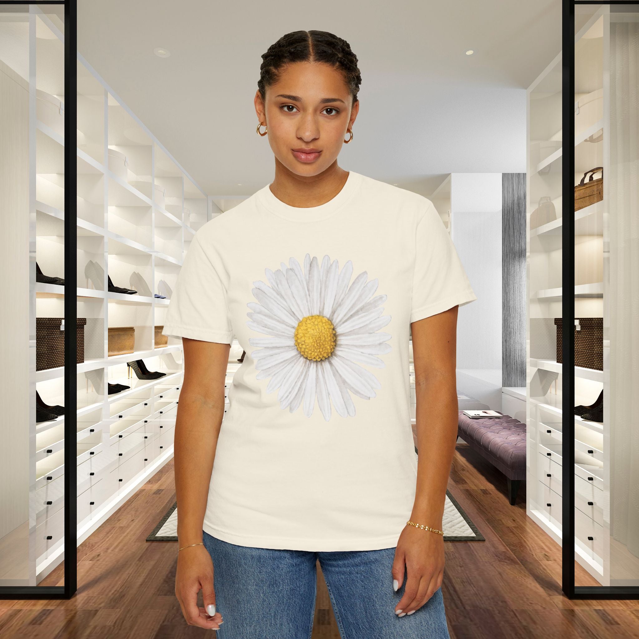 Experience comfort and style with this unisex garment-dyed t-shirt. Featuring a beautiful daisy design, it embodies a relaxed and cheerful vibe, perfect for casual outings or lounging at home. The soft fabric and inviting color palette make it an ideal choice for spring and summer wear.  Add a splash of joy to your wardrobe, and share the positive energy with friends and family!
