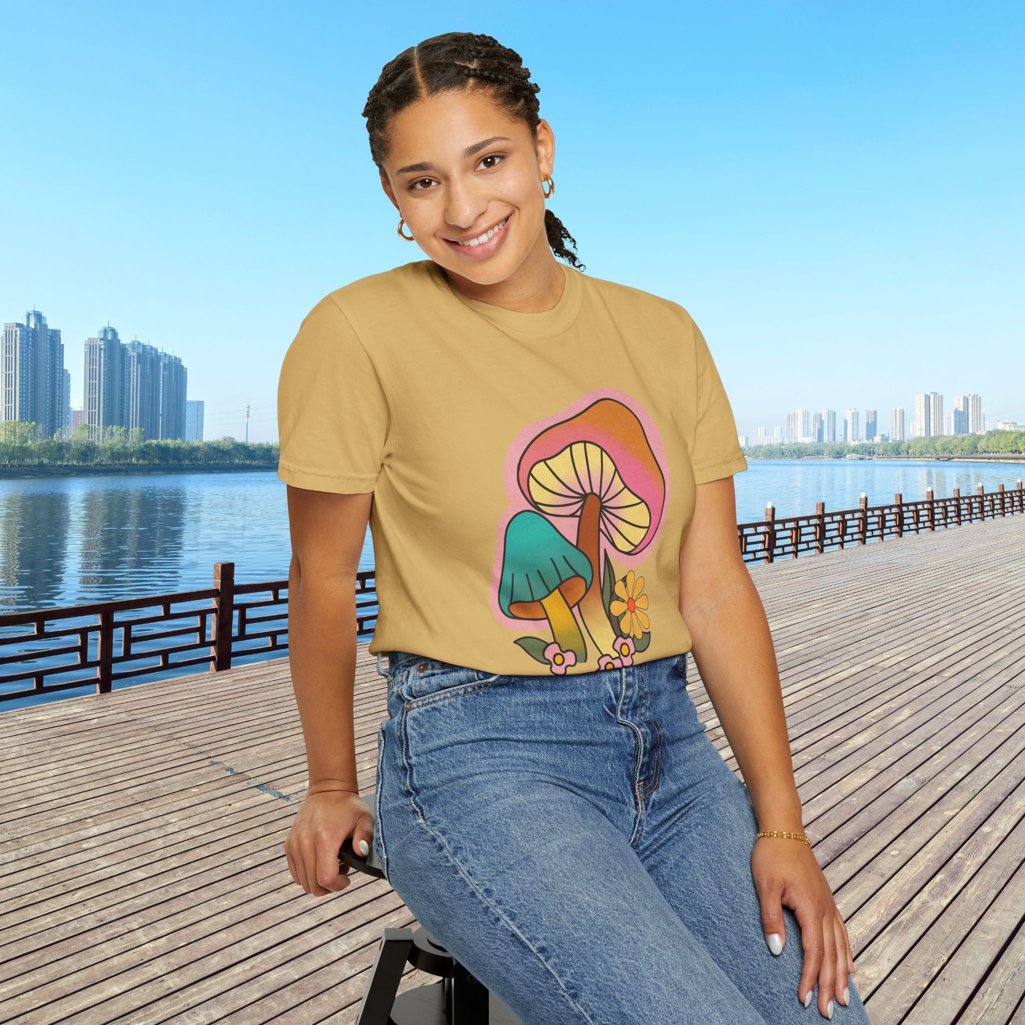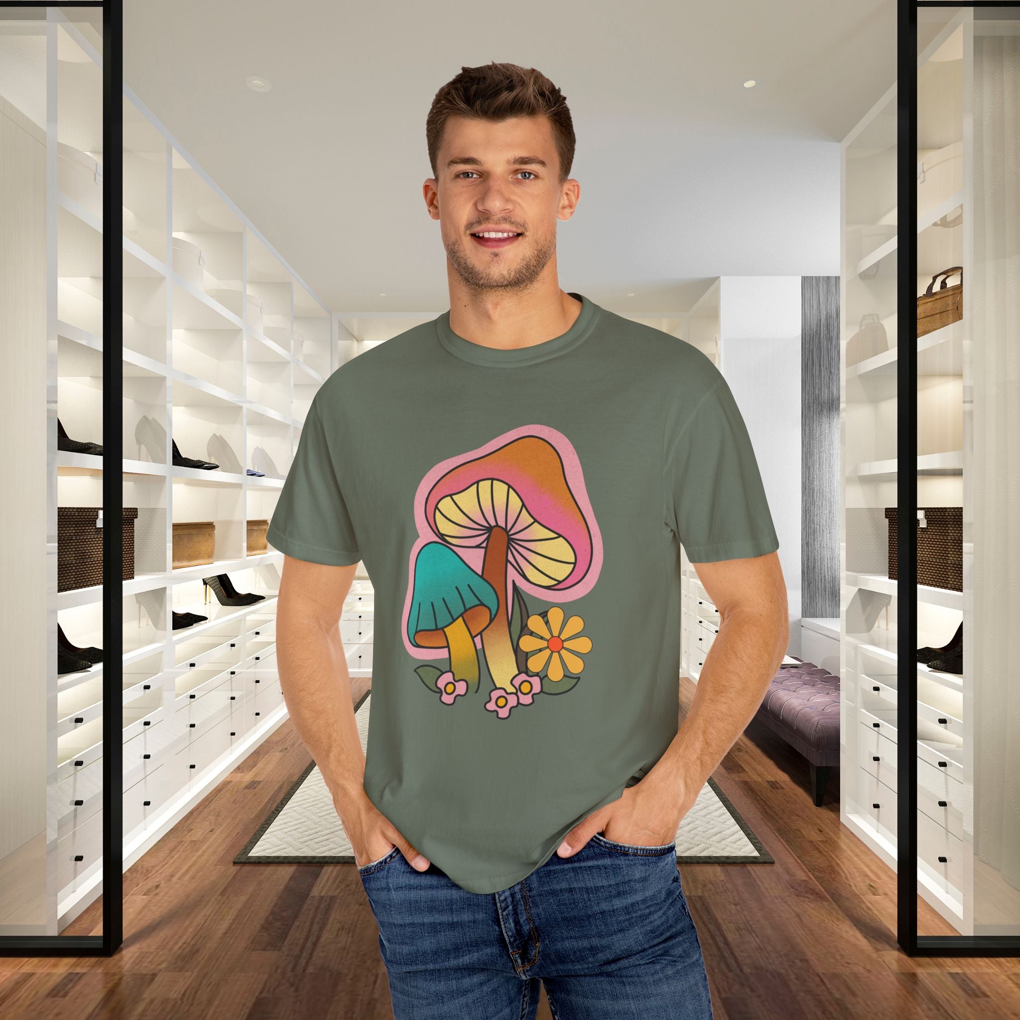 Retro Mushroom Floral T-Shirt, Unisex Boho Tee,