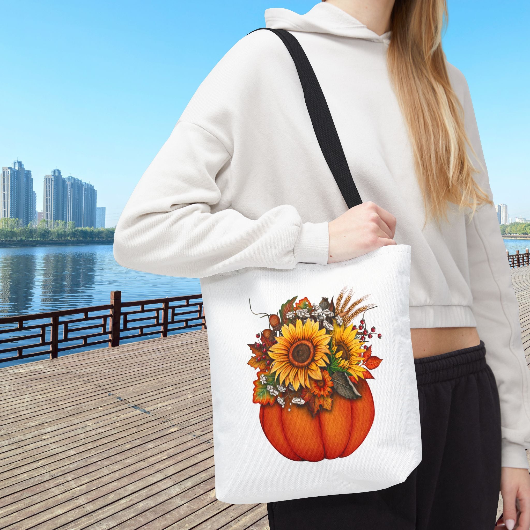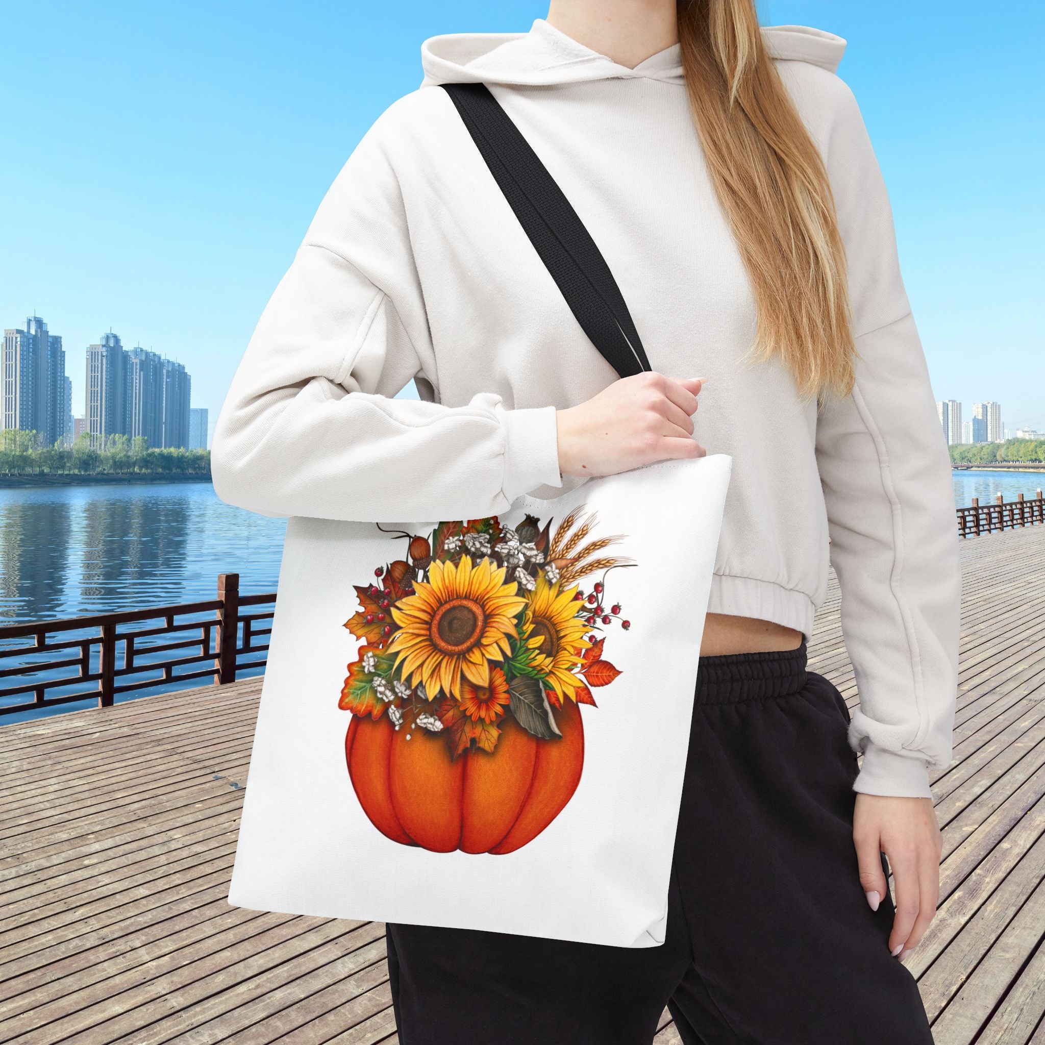 Elevate your everyday style with this beautifully designed Tote Bag. Featuring a striking floral pumpkin motif, this bag captures the warmth and vibrancy of autumn, making it a perfect accessory for any seasonal outing. Its versatile design ensures that it can seamlessly transition from a day at the farmer's market to a cozy evening gathering with friends. Ideal for anyone who loves to embrace the spirit of fall, this tote is not just a stylish statement, but also a practical companion for grocery runs or day trips. Perfect for Halloween, Thanksgiving, or as a thoughtful gift for loved ones during the fall season, this tote will surely bring a touch of festive cheer into your life.