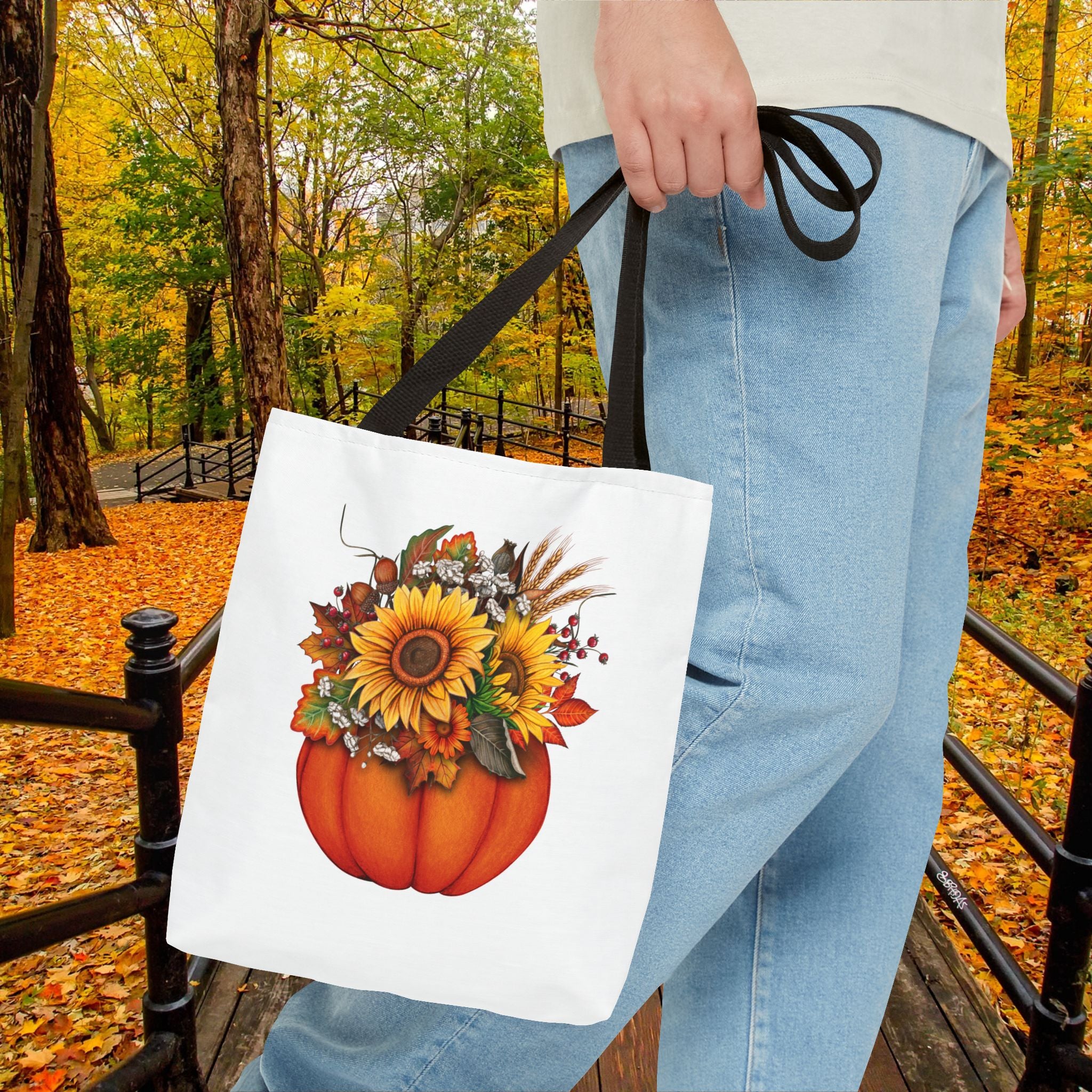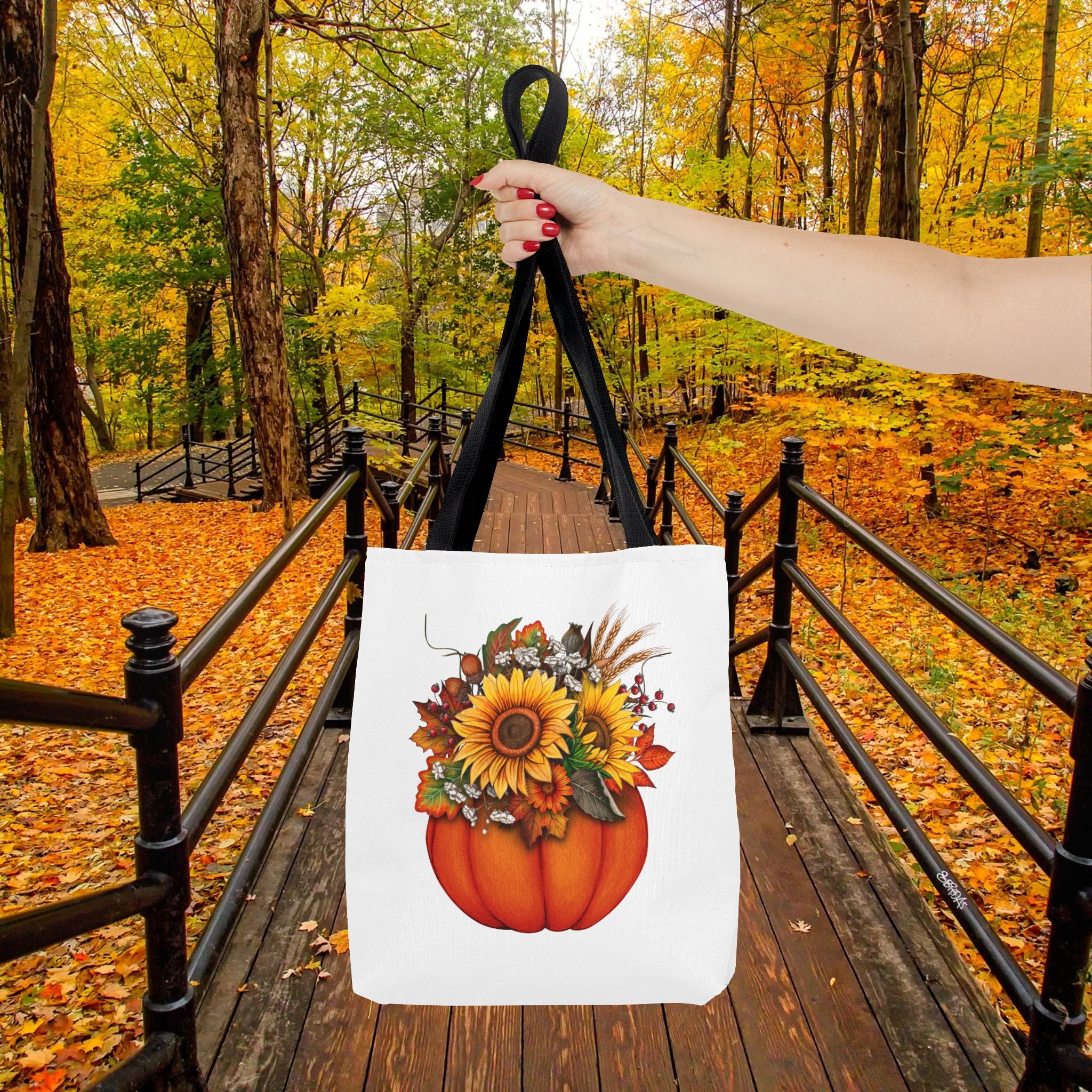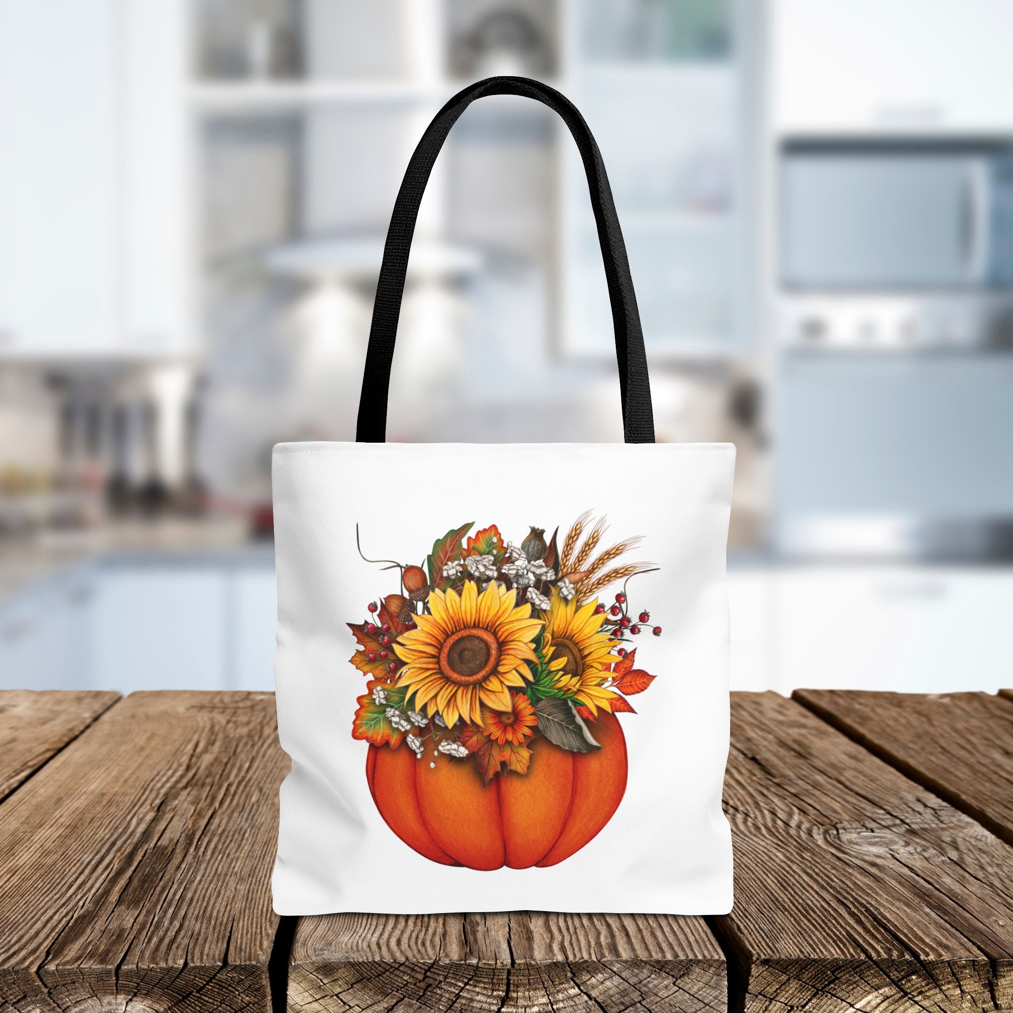 Autumn Floral Tote Bag, Pumpkin Harvest Bag,