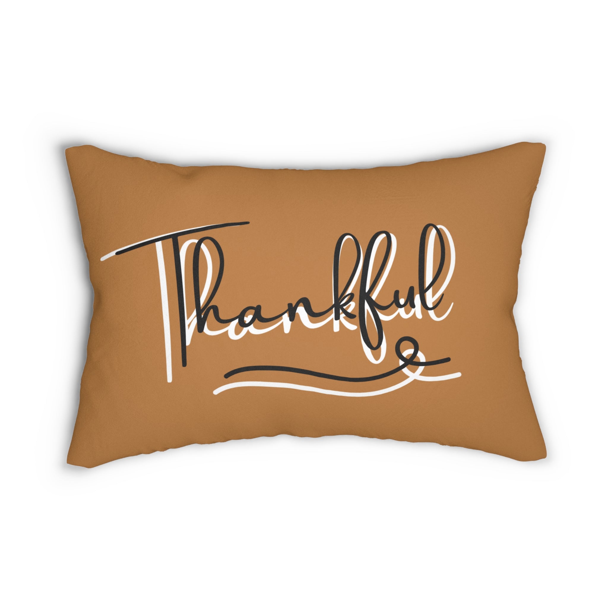 Brown Thankful Lumbar Pillow, Thanksgiving Cushion,