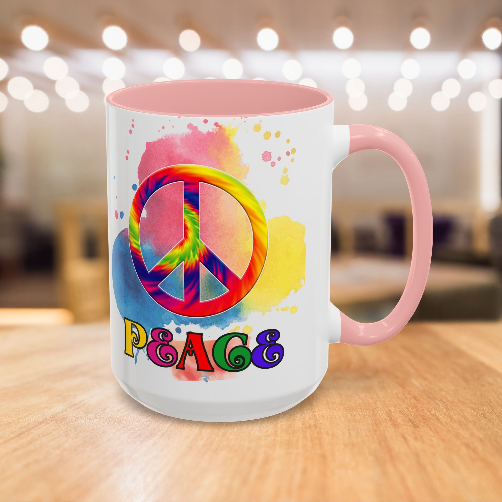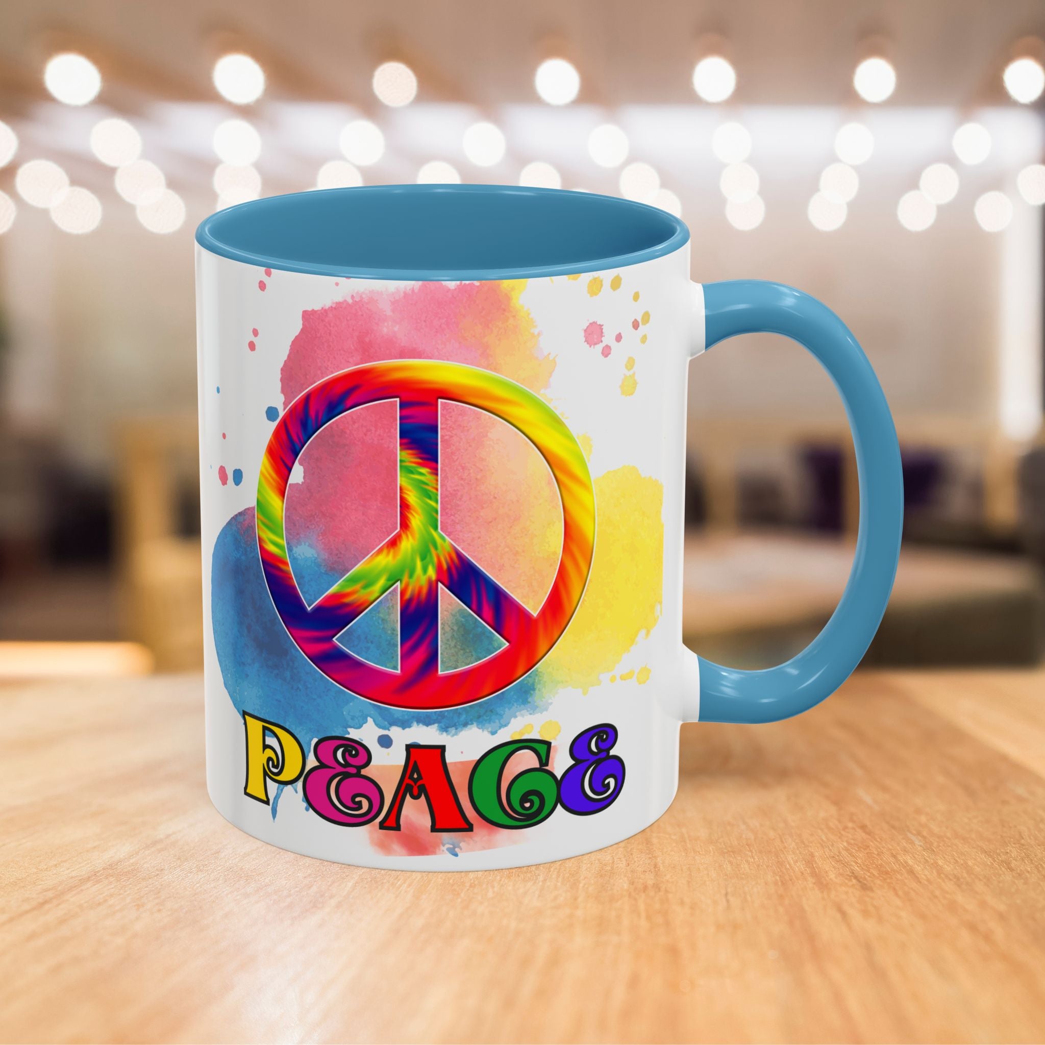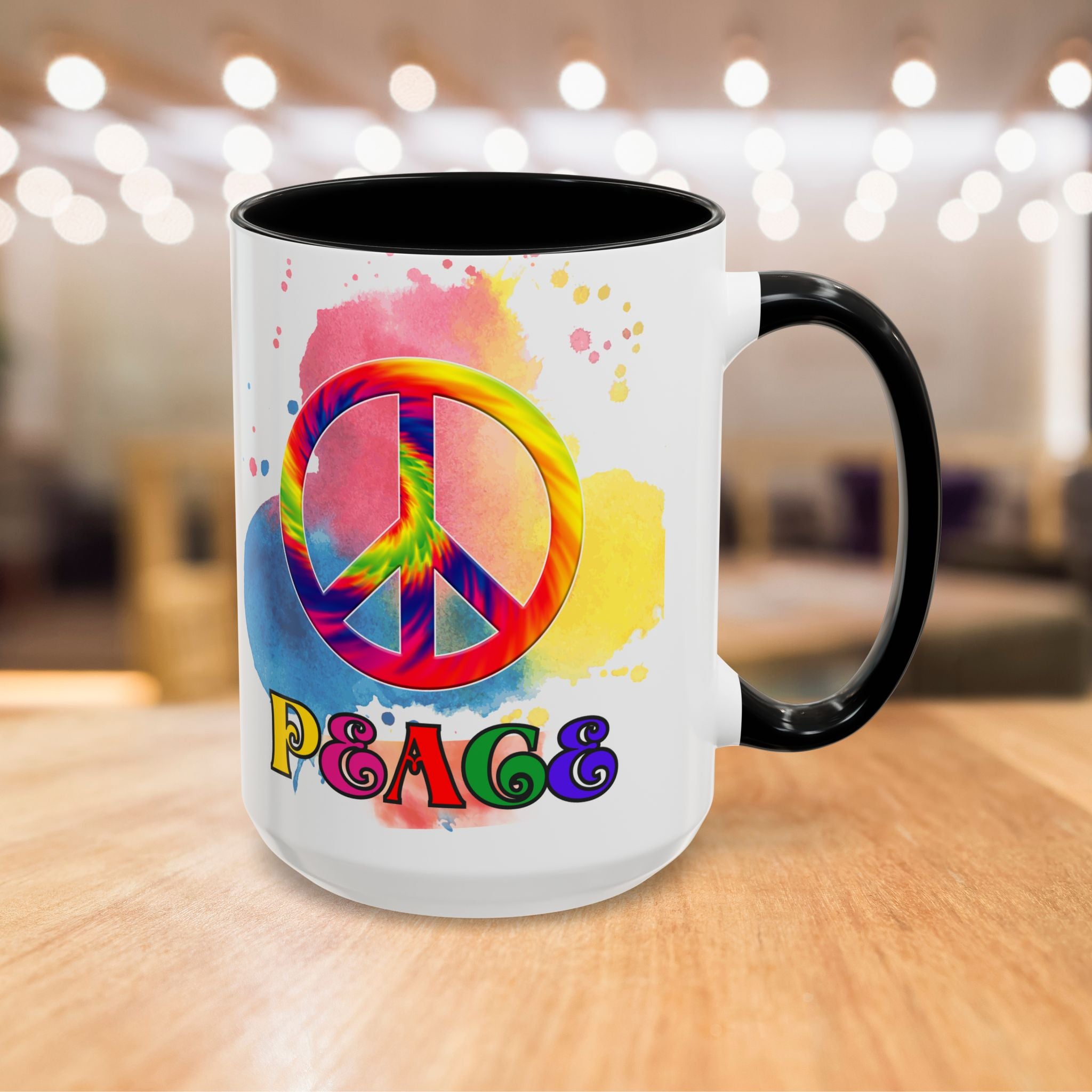 Colorful Peace Mug with Tie-Dye Design, Various Colors & Sizes