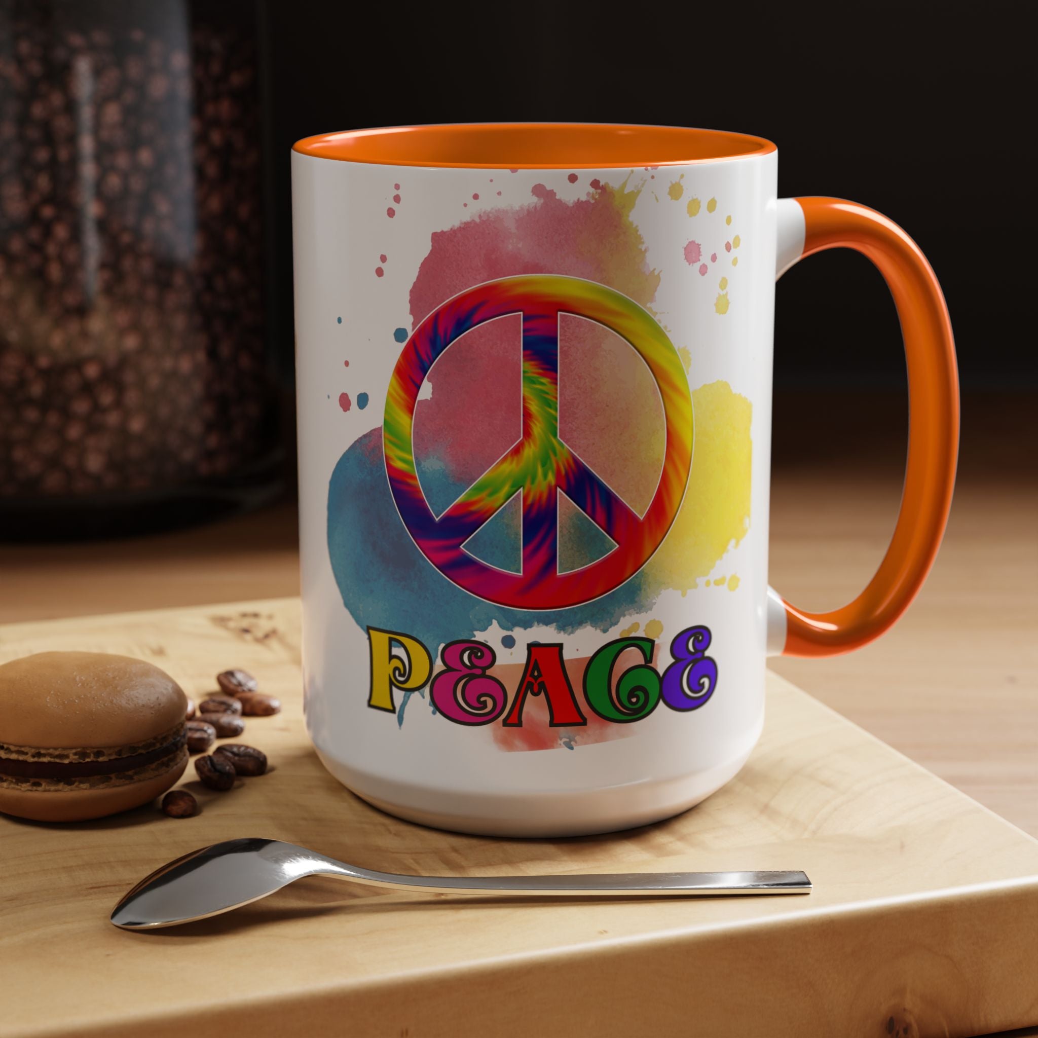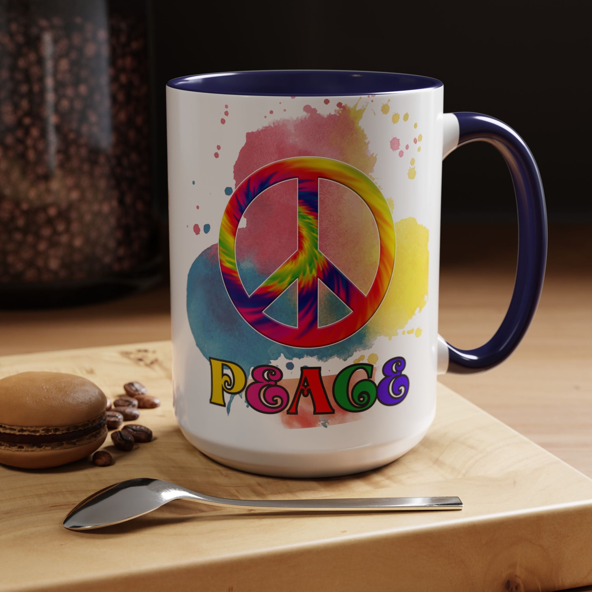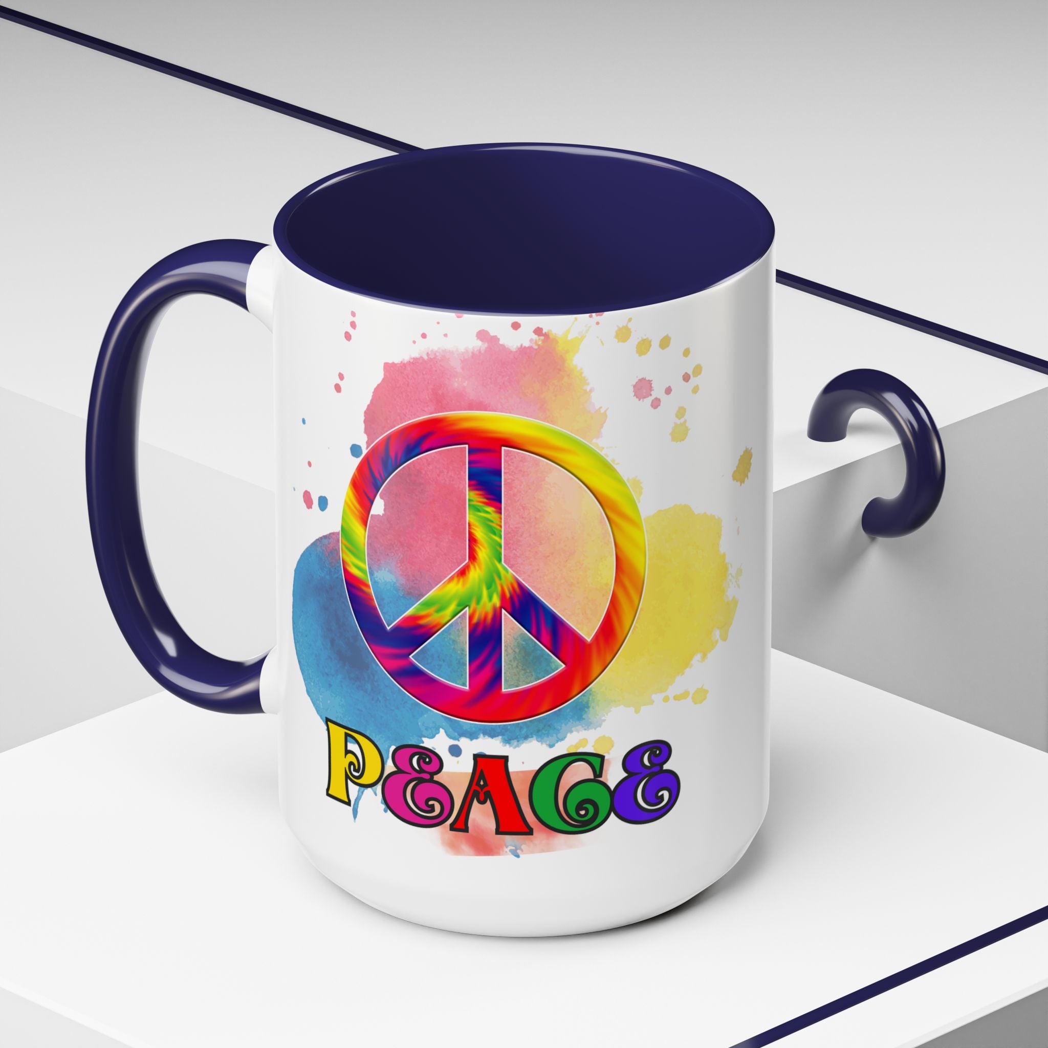 Colorful Peace Mug with Tie-Dye Design, Various Colors & Sizes