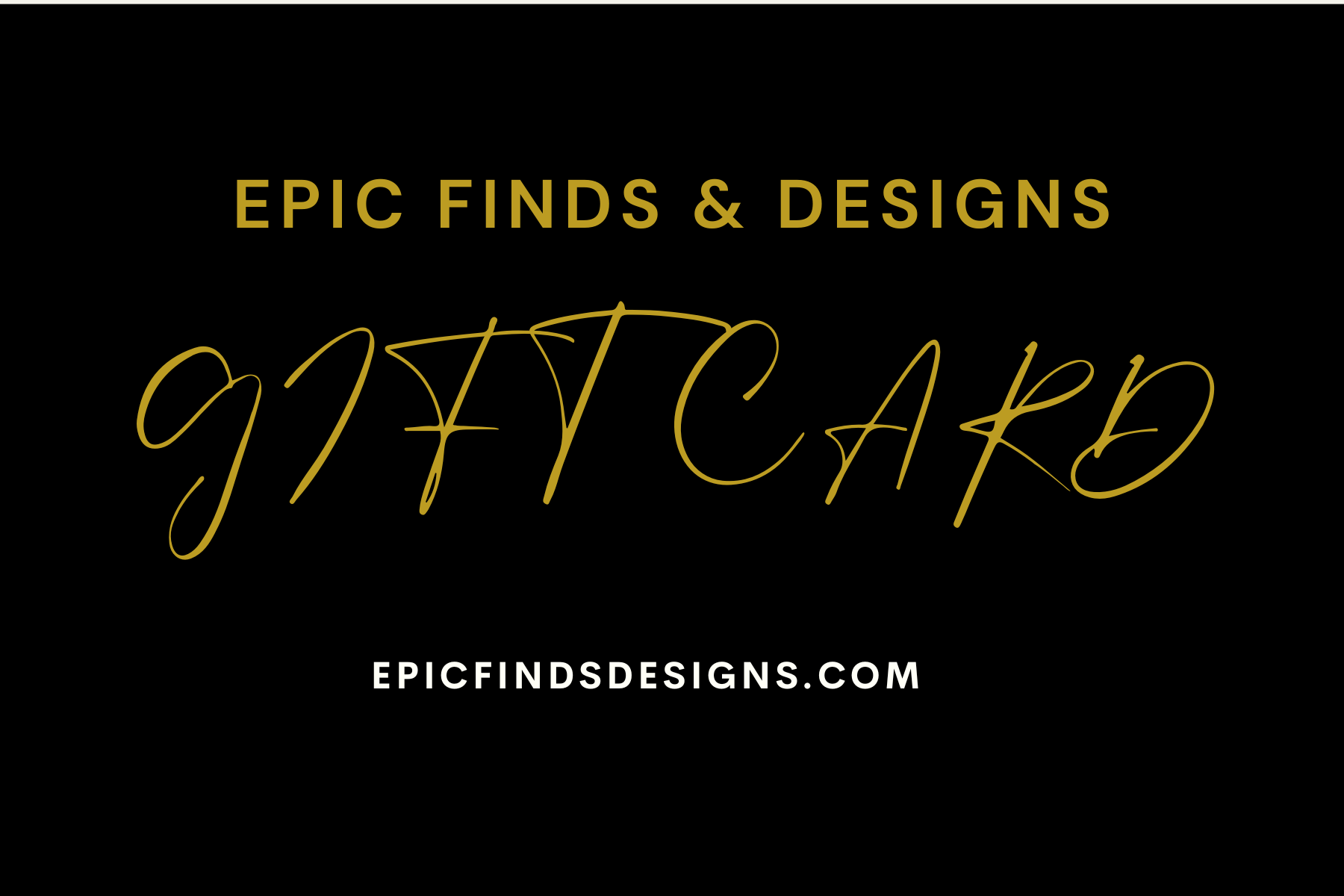 Give the a Gift Card to a friend, family member or loved one. They make awesome surprises and are great for that last minute hard to think of gift. Available in denominations from $25 to $200 dollars. Digital gift cards delivered directly to the recipients email and never expire to be used online in Epic Finds & Designs.